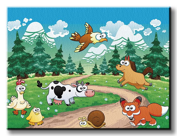 Lisek, konik i inne zwierzaki - Obraz na płótnie