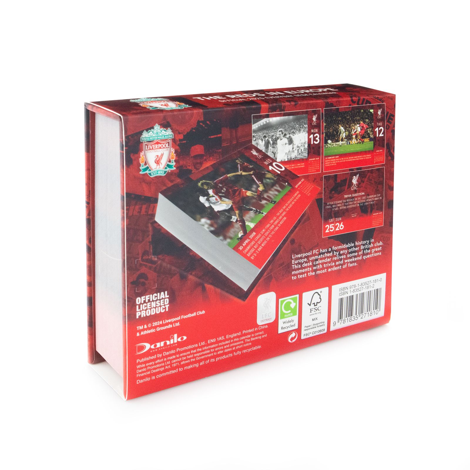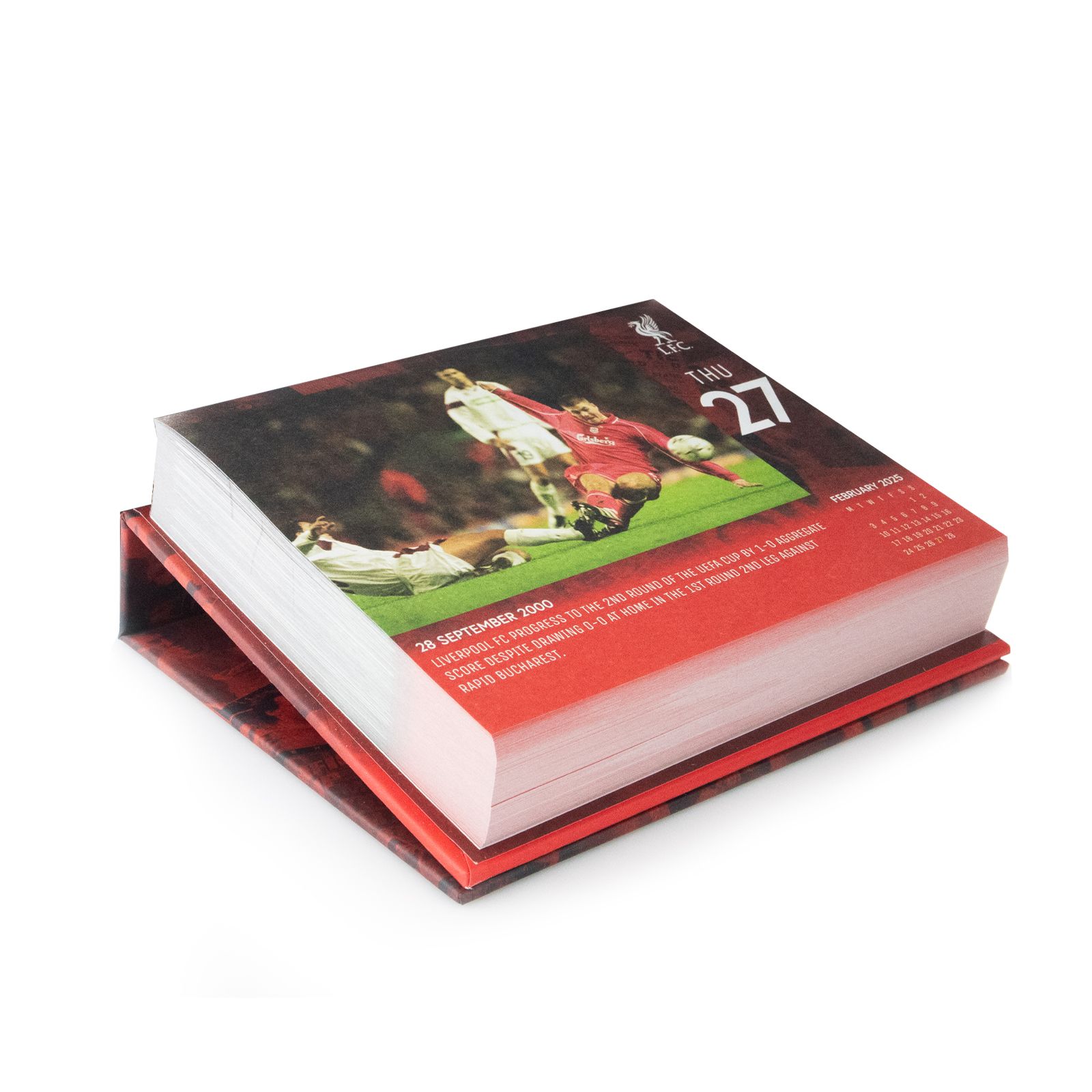 Liverpool FC oficjalny kalendarz kartkowy na 2025 rok Oryginalny i licencjonowany kalendarz, posiada 366 kartek na każdy dzień roku. Na każdej z kart znajduje się duża fotografia bądź grafika oraz czytelne kalendarium. W kalendarzu znajduje się 366 unikalnych zdjęć i grafik z cytatami na każdy dzień. Szczegóły techniczne Świetna, cyfrowa jakość druku. Wymairy kalendarza: 15,5x13,5x3,8 cm Marka: Danilo