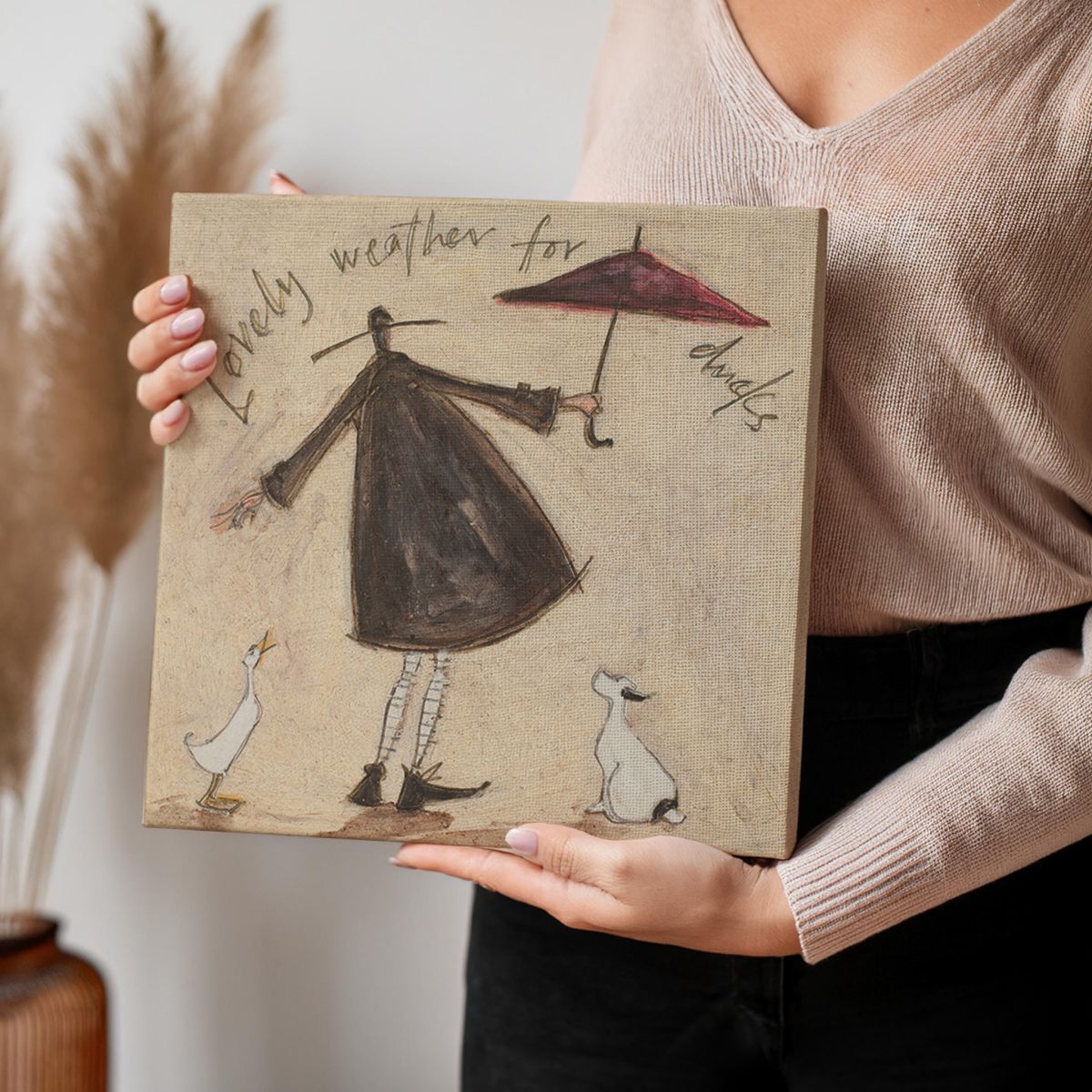 Obraz na ścianę noszący nazwę Lovely Weather For Ducks. Autorstwa: Sam Toft Szukasz oryginalnego obrazu na ścianę? Wybierz jeden z naszej kolekcji! wyraziste barwy i doskonała ostrość nadruku., obrazy charakteryzuje wysokie nasycenie barw i ostrość, nie sposób oderwać od nich wzrok. Dzięki wykorzystaniu nowych technologii obraz jest piękny i zachowuje swój wygląd przez długi czas. Mocne bawełniane płótno wygląda naturalnie i oddaje charakter autentyczności obrazu.
