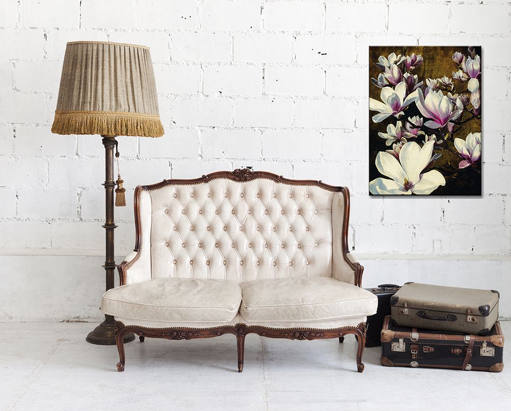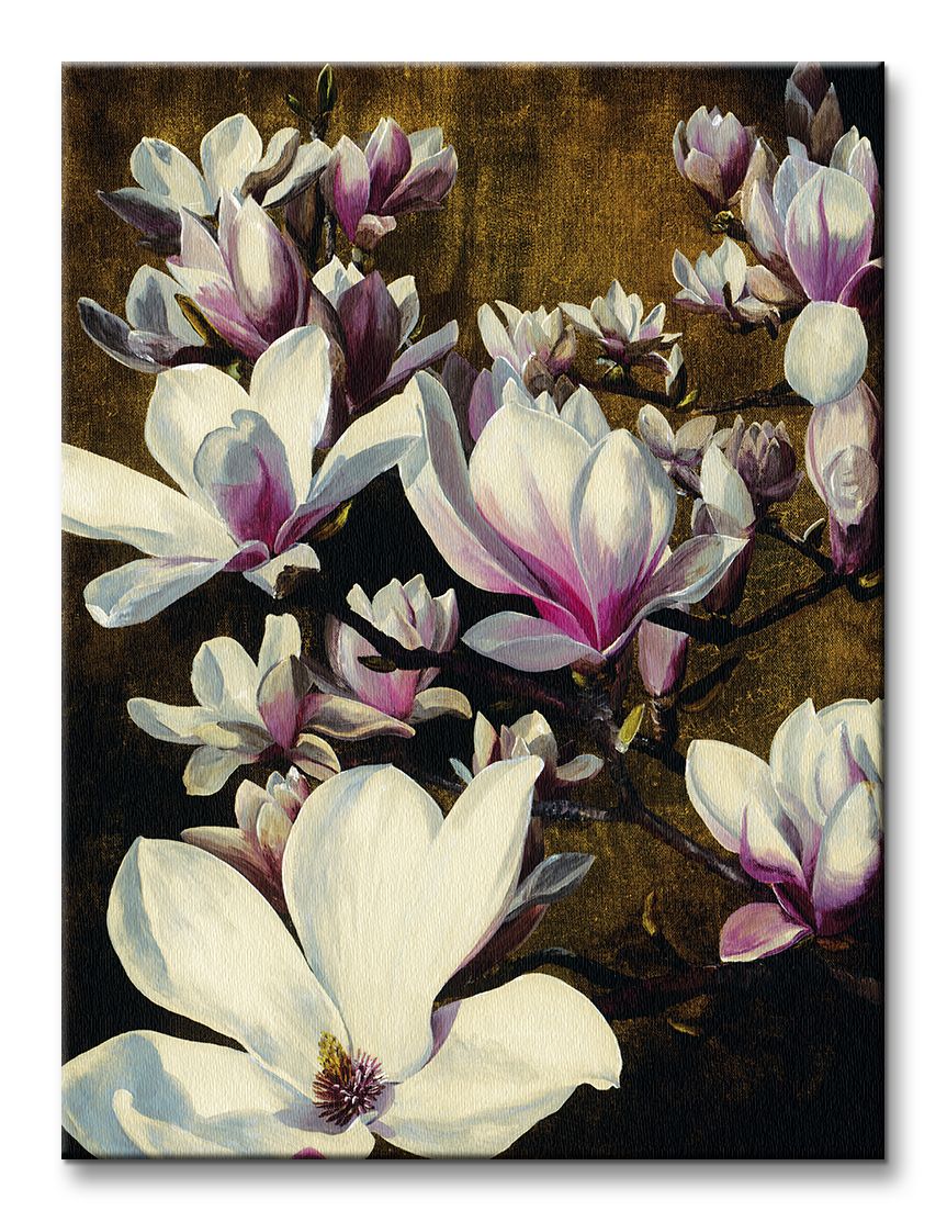 Obraz na ścianę noszący nazwę Magnolia Silk. Autorstwa: Sarah Caswell Szukasz oryginalnej, ekskluzywnej dekoracji na ścianę? Ten obraz jest dla Ciebie! fantastyczne kolory i rewelacyjna ostrość., obrazy charakteryzuje wysokie nasycenie barw i ostrość, nie sposób oderwać od nich wzrok. Kolory utrzymują się przez długie lata. Bawełniane płótno wysokiej jakości gwarantuje świetne odwzorowanie i trwałość obrazu.