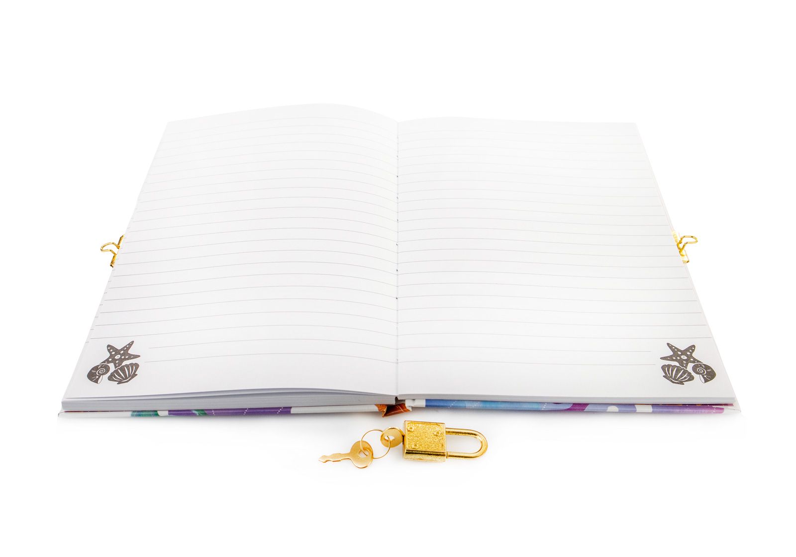 Notes A5 Mała Syrenka zamykany na kłódkę Notatnik inspirowany bajką Disneya "Mała Syrenka" to idealny gadżet dla miłośników podwodnego świata Arielki! Twarda okładka, zamknięcie na kłódkę i 120 stron w linię sprawiają, że jest to doskonałe miejsce na notatki i sekrety. Szczegóły techniczne: Format: A5 (14,8 x 21 cm) Liczba stron: 120 (w linię) Okładka: twarda, kolorowy nadruk Zamknięcie: kłódka z kluczykiem Licencjonowany produkt Oficjalny notatnik Disney Mała Syrenka idealny na prezent dla każdego fana bajki!