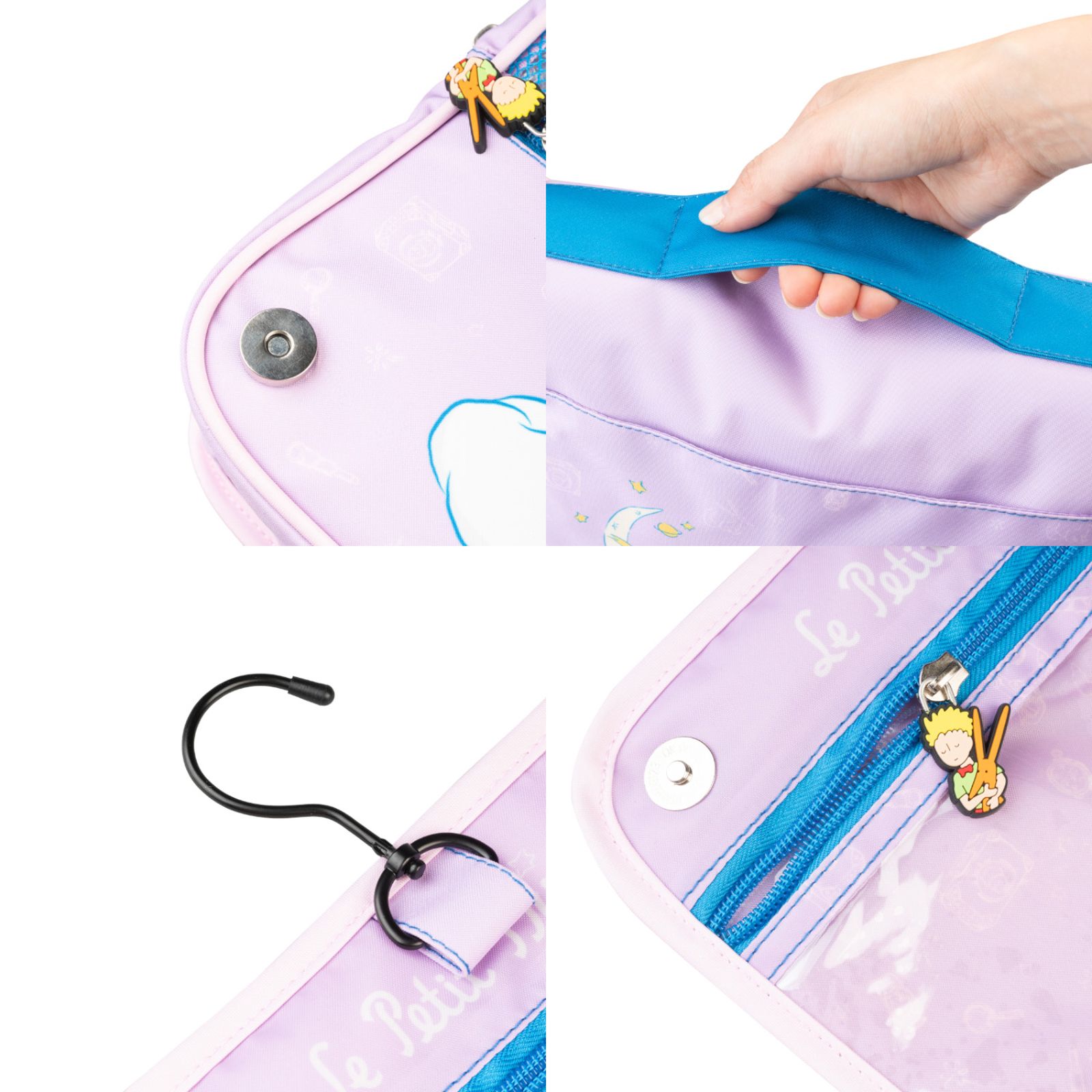 Mały Książę - wisząca kosmetyczka podróżna Wisząca kosmetyczka z motywem Małego Księcia i jego lisa to funkcjonalny i stylowy dodatek dla wszystkich miłośników tej kultowej opowieści. Dzięki kompaktowym wymiarom i praktycznemu metalowemu haczykowi, kosmetyczka idealnie sprawdzi się w podróży można ją wygodnie zawiesić w łazience lub na drzwiach. W środku znajduje się 6 przegródek, które ułatwiają organizację i przechowywanie kosmetyków oraz drobnych akcesoriów. Specyfikacje: Liczba kieszeni: 6 Zamknięcie: zatrzaski magnetyczne Wyposażenie: metalowy haczyk do zawieszenia Materiał: poliester Wymiary złożonej: 24 x 20 x 4,5 cm Wymiary rozłożonej: 24 x 41 x 9 cm Licencjonowany produkt Oryginalny produkt z oficjalną licencją Mały Książę. Doskonały do sprzedaży prezentowej i podróżnej.
