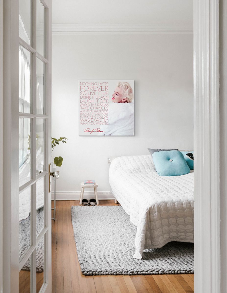 Obraz na ścianę noszący nazwę Marilyn Monroe (Nothing Lasts Forever). Szukasz oryginalnej, ekskluzywnej dekoracji na ścianę? Ten obraz jest dla Ciebie! doskonała jakość barw i jakość wykonania., obrazy charakteryzuje wysokie nasycenie barw i ostrość, nie sposób oderwać od nich wzrok. Kolory utrzymują się przez długie lata. Bawełniane płótno wysokiej jakości gwarantuje świetne odwzorowanie i trwałość obrazu.