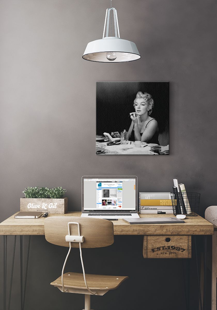 Obraz na ścianę noszący nazwę Marilyn Monroe (Preparation). Szukasz oryginalnej, ekskluzywnej dekoracji na ścianę? Ten obraz jest dla Ciebie! doskonała jakość barw i jakość wykonania., obrazy charakteryzuje wysokie nasycenie barw i ostrość, nie sposób oderwać od nich wzrok. Kolory utrzymują się przez długie lata. Mocne bawełniane płótno wygląda naturalnie i oddaje charakter autentyczności obrazu.