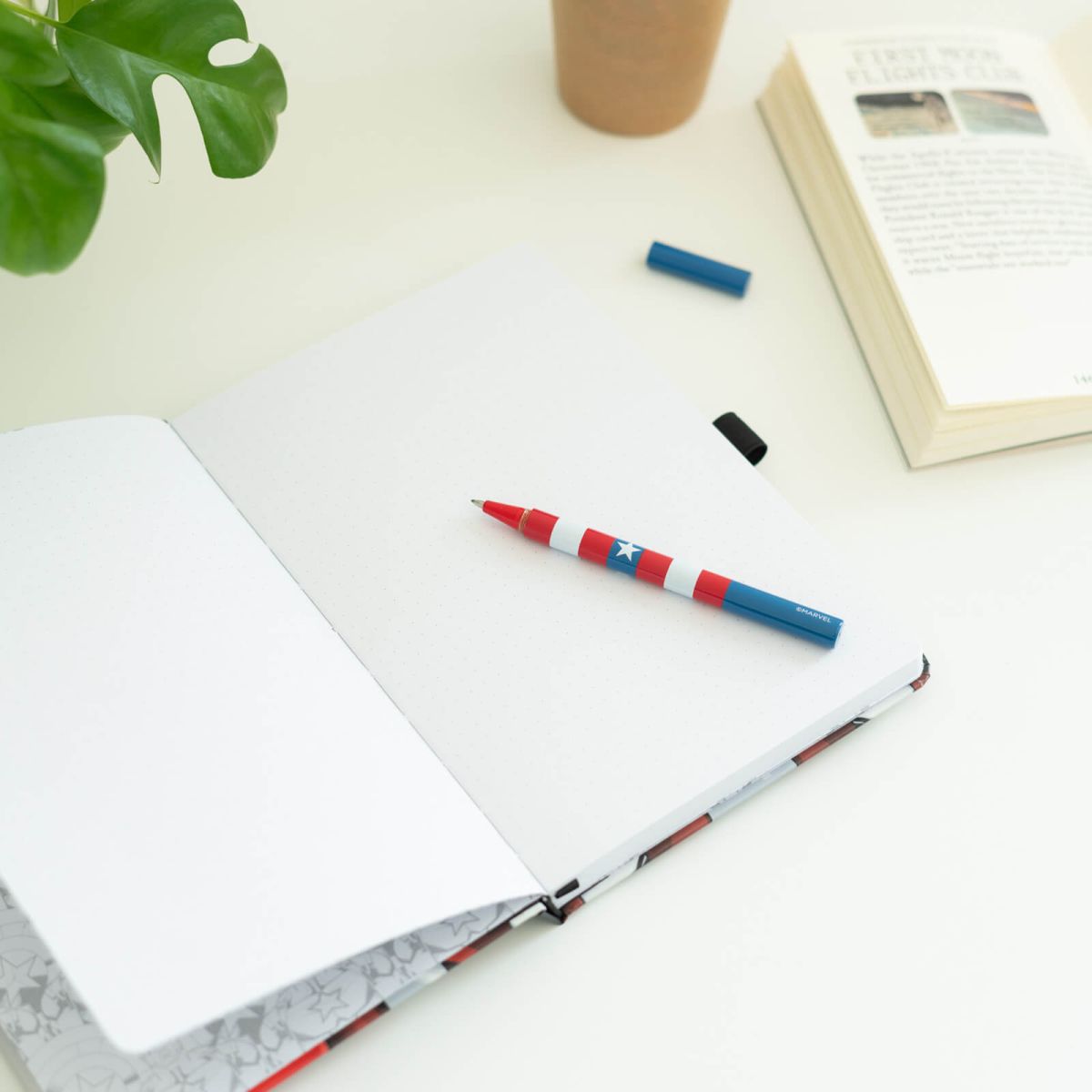 Długopis dołączony do zestawu sprawia, że ten notatnik jest idealny do szkoły, pracy czy na podróże, utrzymując organizację w superbohaterskim stylu.
