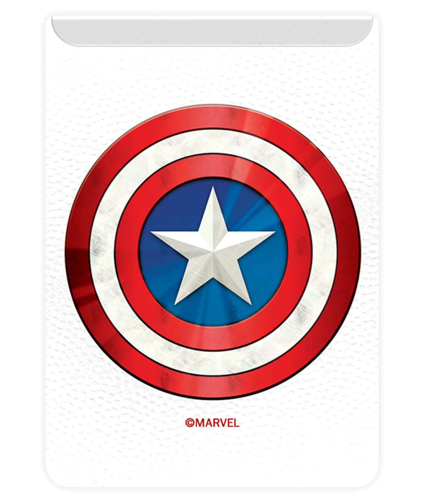Etui na karty Marvel Captain America Shield Kieszonka z eko skórki na karty płatnicze, gotówkę, dokumenty, karnet czy notatki. Dzięki mocowaniu 3M bez problemu umieścisz ją na telefonie. Gadzet zapakowany jest w oryginalne opakowanie. Posiada oficjalną licencję producenta, to oryginalny produkt! Wymiary: 5,8x8,6 cm