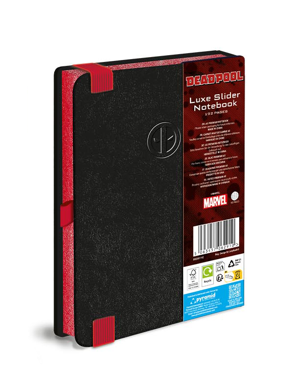 Format: poręczny rozmiar A5 do torby i plecaka Opaska: elastyczne zamknięcie, które chroni strony przed zaginaniem Detal: ozdobny suwak na opasce w klimacie Deadpoola Okładka: efektowne tłoczenie z motywem Marvel Oryginalny produkt na oficjalnej licencji Marvel.