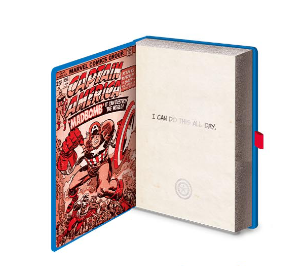 Waga: 0,385 kg Praktyczny notes A5 z motywem Kapitana Ameryki łączy komiksowy styl z dopracowanym wykończeniem.