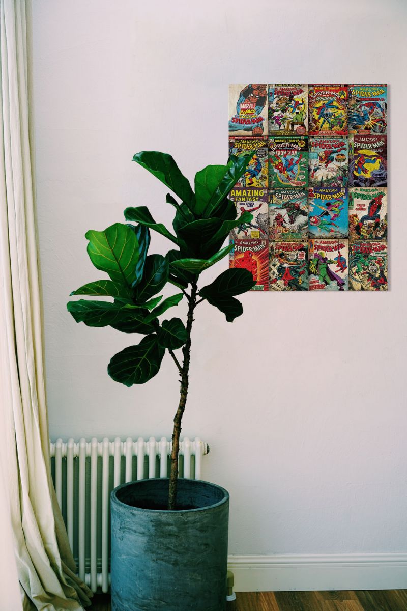Obraz na ścianę noszący nazwę Marvel Spider Man Covers. Szukasz oryginalnej, ekskluzywnej dekoracji na ścianę? Ten obraz jest dla Ciebie! fantastyczne kolory i rewelacyjna ostrość., obrazy charakteryzuje wysokie nasycenie barw i ostrość, nie sposób oderwać od nich wzrok. Kolory utrzymują się przez długie lata. Mocne bawełniane płótno wygląda naturalnie i oddaje charakter autentyczności obrazu.