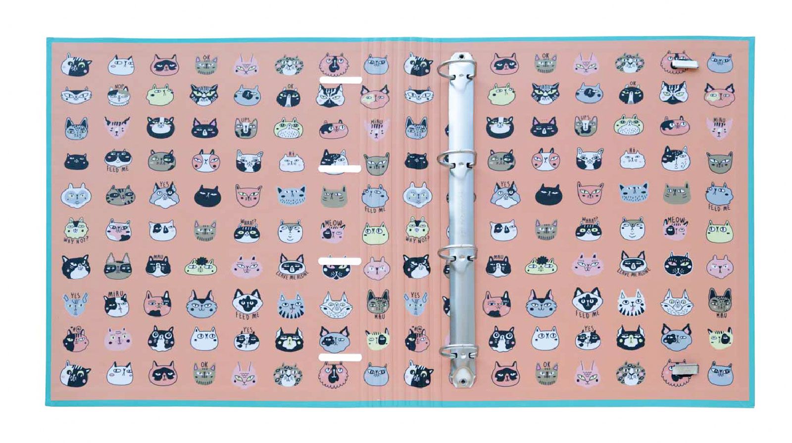 W serii Meow Meow dostępne są również inne akcesoria biurowe notesy, teczki i kalendarze o tym samym wzorze.