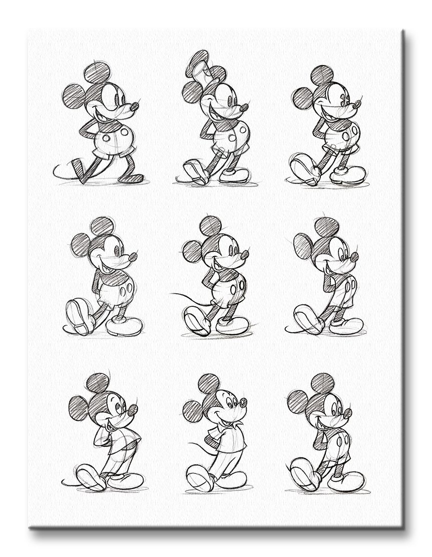 Obraz na ścianę noszący nazwę Mickey Mouse (Sketched - Multi). Autorstwa: nieznanego Szukasz oryginalnej, ekskluzywnej dekoracji na ścianę? Ten obraz jest dla Ciebie! doskonała jakość barw i jakość wykonania., obrazy charakteryzuje wysokie nasycenie barw i ostrość, nie sposób oderwać od nich wzrok. Kolory utrzymują się przez długie lata. Mocne bawełniane płótno wygląda naturalnie i oddaje charakter autentyczności obrazu.