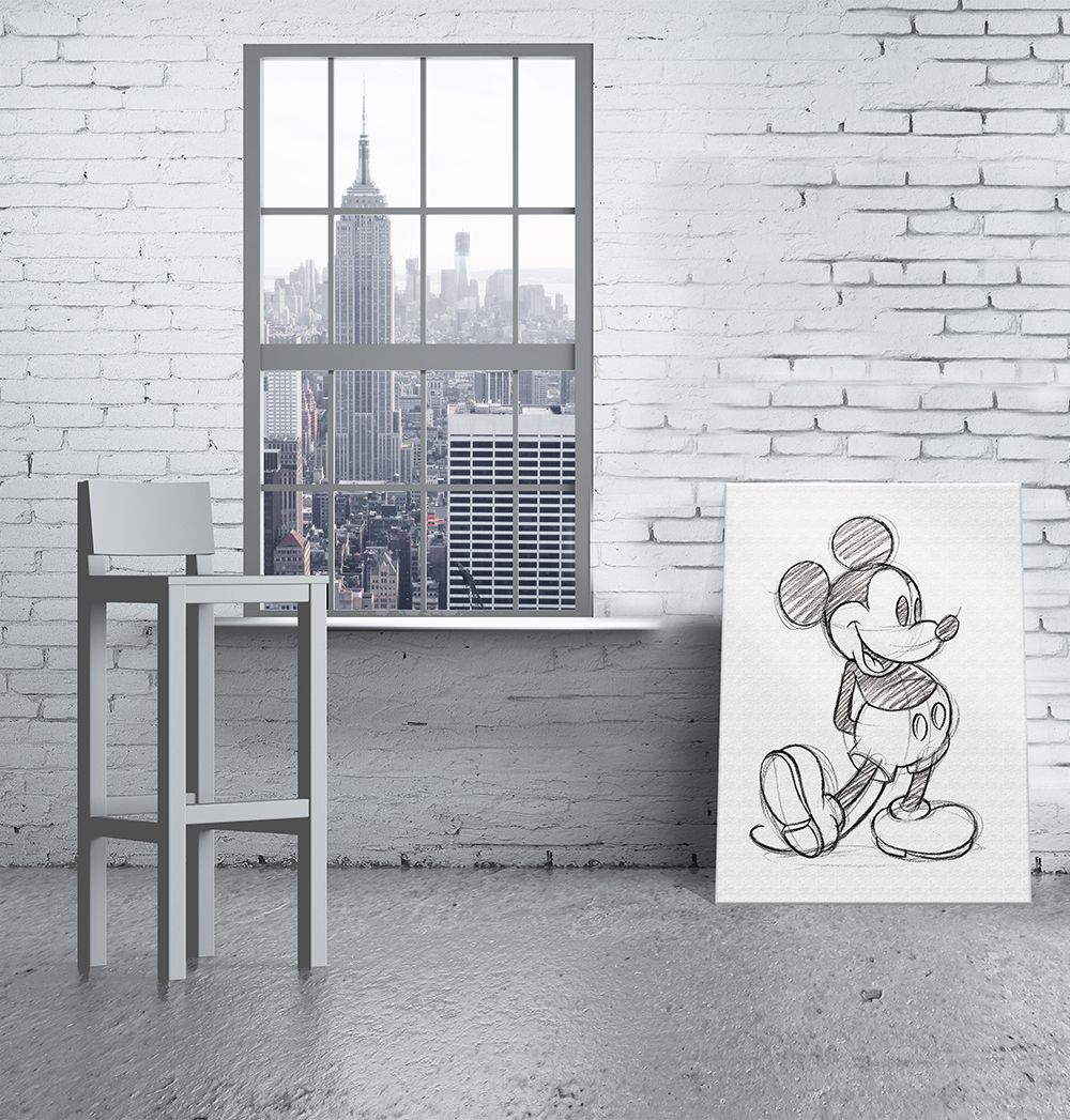 Obraz na ścianę noszący nazwę Mickey Mouse (Sketched - Single). Autorstwa: nieznanego Szukasz oryginalnej, ekskluzywnej dekoracji na ścianę? Ten obraz jest dla Ciebie! trwałe kolory i fantastyczna jakość., obrazy charakteryzuje wysokie nasycenie barw i ostrość, nie sposób oderwać od nich wzrok. Kolory utrzymują się przez długie lata. Mocne bawełniane płótno wygląda naturalnie i oddaje charakter autentyczności obrazu.