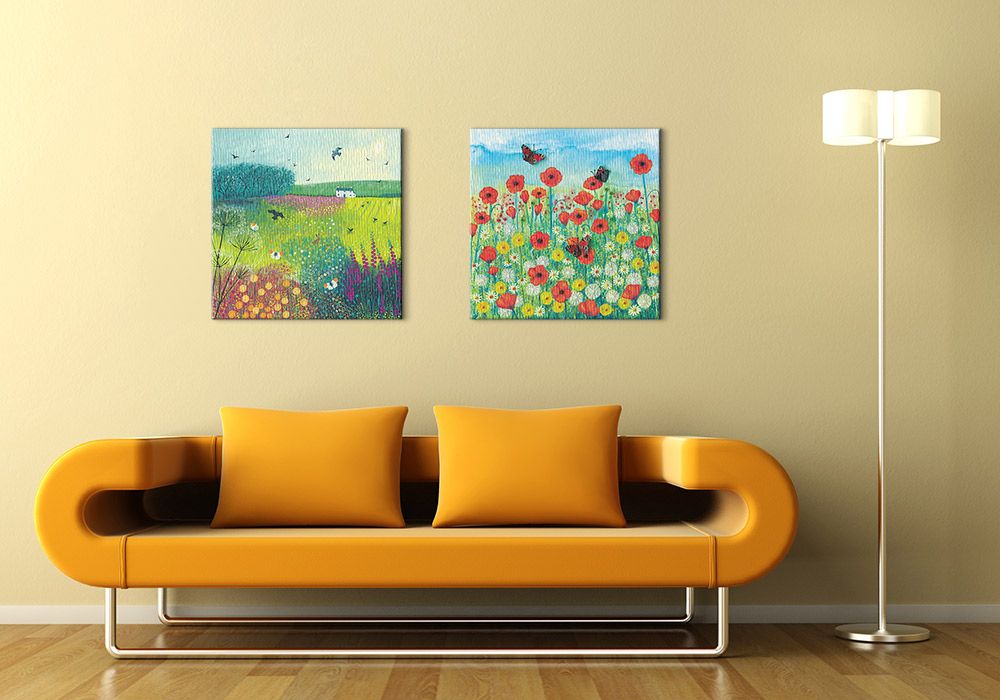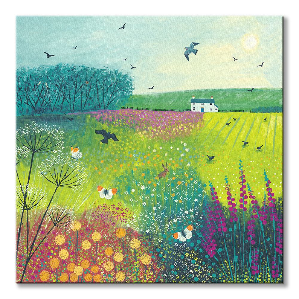Obraz na ścianę noszący nazwę Midsummer Meadow. Autorstwa: Jo Grundy Szukasz oryginalnej, ekskluzywnej dekoracji na ścianę? Ten obraz jest dla Ciebie! doskonała jakość barw i jakość wykonania., obrazy charakteryzuje wysokie nasycenie barw i ostrość, nie sposób oderwać od nich wzrok. Kolory utrzymują się przez długie lata. Bawełniane płótno wysokiej jakości gwarantuje świetne odwzorowanie i trwałość obrazu.