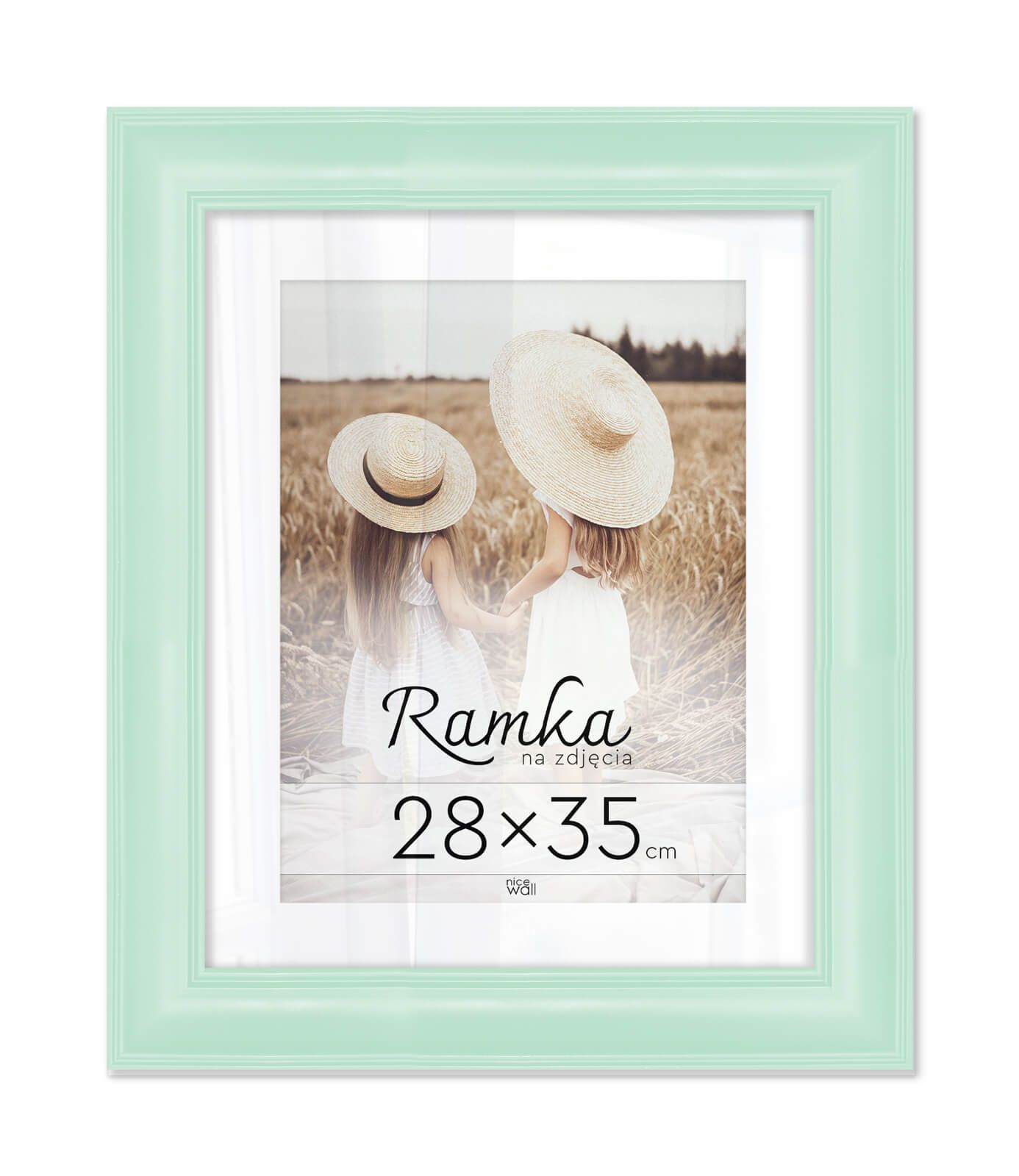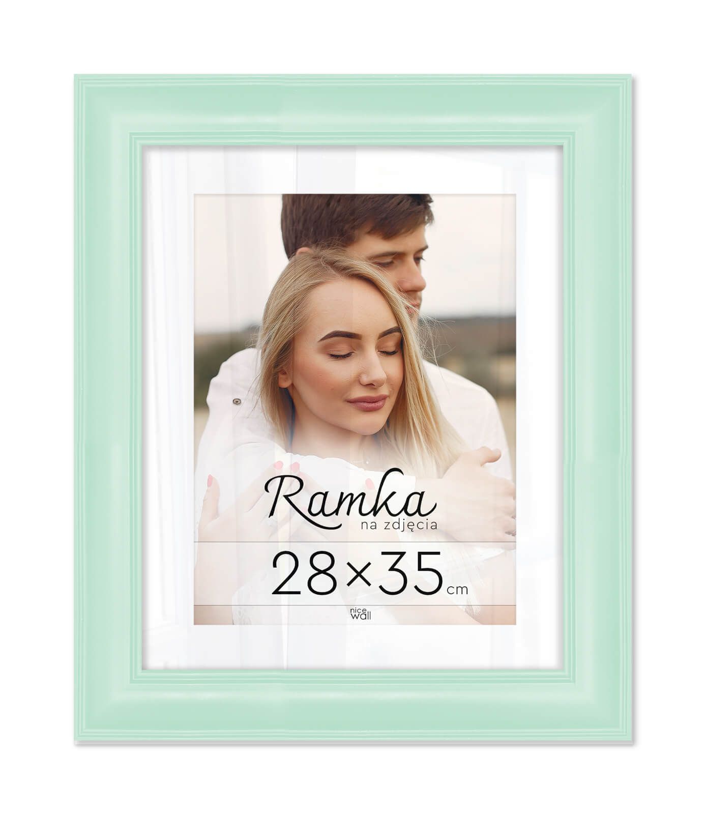 Miętowa ramka na zdjęcia 28x35 cm Eleganckie ramki do oprawy plakatów, zdjęć i rysunków. Wykonane zpłyty pilśniowej, polistyrenu i lekkiej, przejrzystej pleksy 1 mm. Ramę można powiesić w pionie lub poziomie. Każdy egzemplarz jest zafoliowany. Posiadającertyfikat FSC. Wyprodukowanew Polsce. Wymiary ramy: 28x35cm. Wymiary profilu: front 4 cm, bok 1,5 cm,