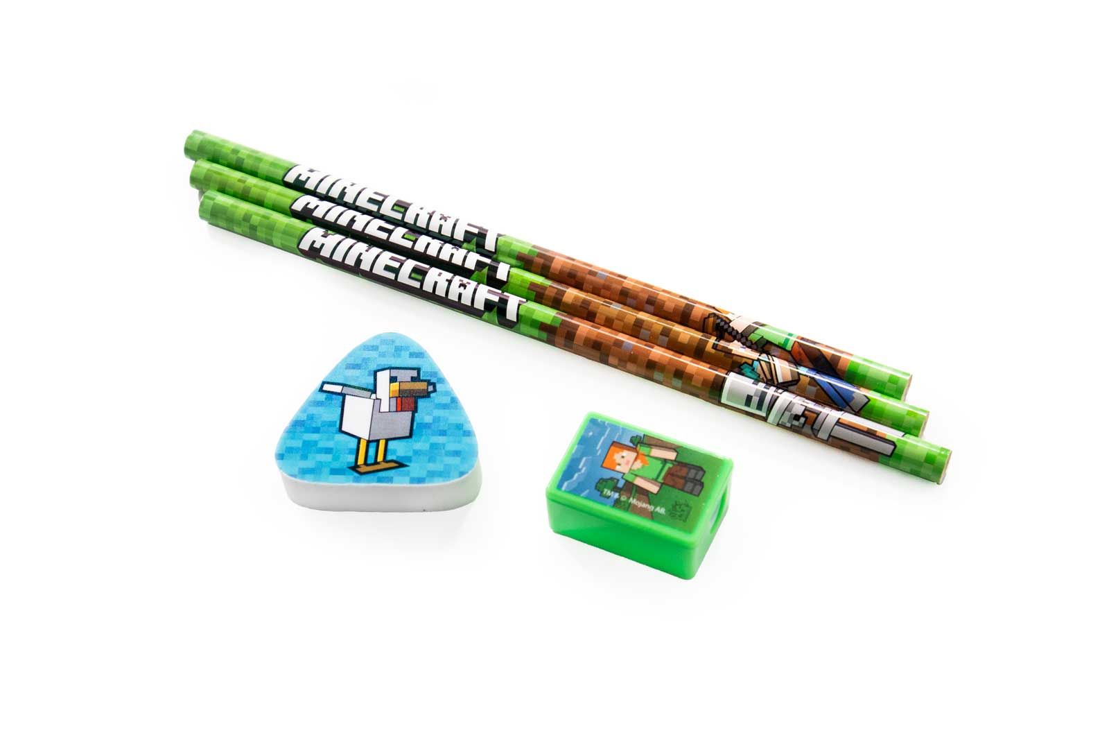 craft Chicken przybory szkolne Numer katalogowy: SR2404673 Producent: Pyramid International Zestaw przyborów szkolnych z motywem Minecraft Chicken to praktyczny komplet dla fanów gry. W opakowaniu znajduje się pięć artykułów z wyrazistymi nadrukami: linijka, ołówek, gumka, długopis oraz przypinka. Elementy wykonane są z trwałych materiałów, a nadruki zachowują intensywne kolory przez długi czas. Idealny zestaw do codziennego użytku w szkole, domu czy podczas kreatywnych zabaw. Szczegóły techniczne Zawartość zestawu: ołówek, długopis, linijka, gumka, przypinka Motyw: Minecraft Chicken Wymiary opakowania: 8,5x22 cm Oryginalny produkt na oficjalnej licencji Minecraft. Gwarantuje wysoką jakość wykonania, wierne odwzorowanie grafiki oraz pełną zgodność z marką, co czyni go pewnym i atrakcyjnym wyborem do sprzedaży detalicznej.