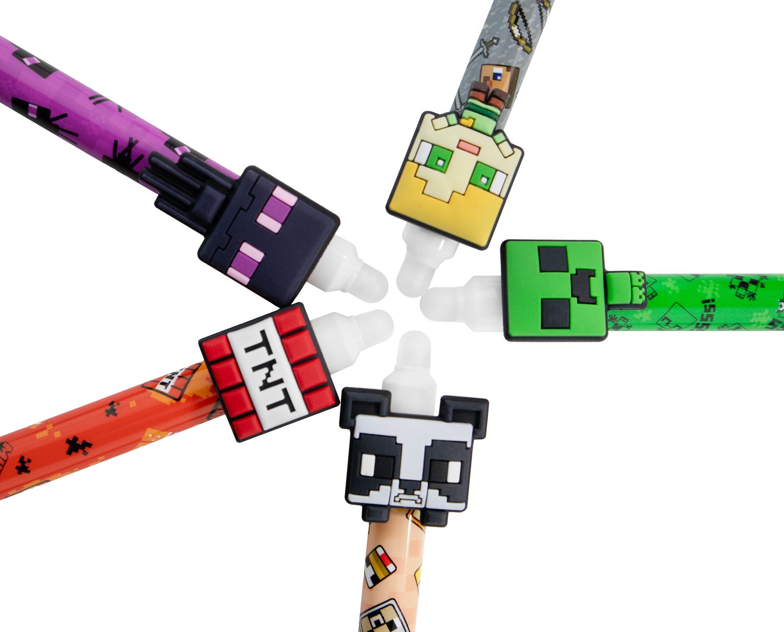 Minecraft Panda - długopis zmazywalny Długopis Minecraft Panda posiada pastelowy wzór inspirowany pikselowymi zwierzakami z gry. Wyposażony jest w końcówkę do ścierania, co ułatwia poprawianie zapisków. Szczegóły techniczne Długość: 15,5 cm Średnica: 3,5 cm Funkcja: ścieralny wkład z gumką Motyw: Minecraft - Panda Licencjonowany produkt Licencjonowany produkt Mojang - oryginalny gadżet Minecraft.