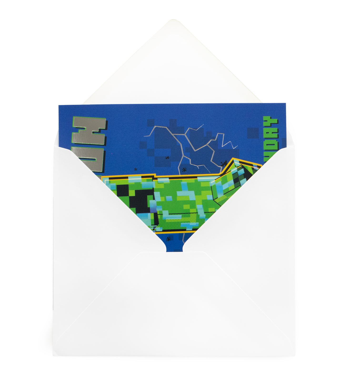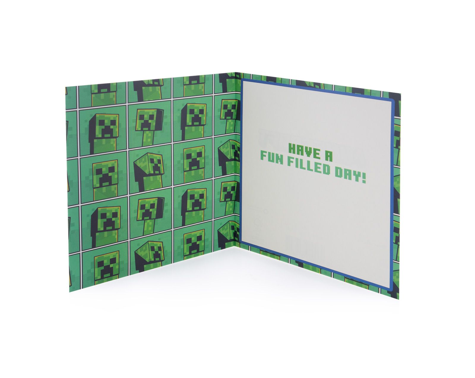 Minecraft Son - kartka urodzinowa Kartka Minecraft Son to propozycja przygotowana specjalnie na urodziny chłopca. Kolorowy motyw z gry i nadrukowane życzenia w środku sprawiają, że kartka jest gotowa do wręczenia. Produkt świetnie sprawdza się jako dodatek do prezentu dla dzieci i młodzieży zainteresowanych światem Minecraft. Szczegóły produktu: Format: 15 x 18 cm Motyw: Minecraft Son Wnętrze: z nadrukowanymi życzeniami Oficjalny produkt z licencją Kartka na oficjalnej licencji Minecraft - oryginalny produkt o dużym potencjale sprzedażowym.