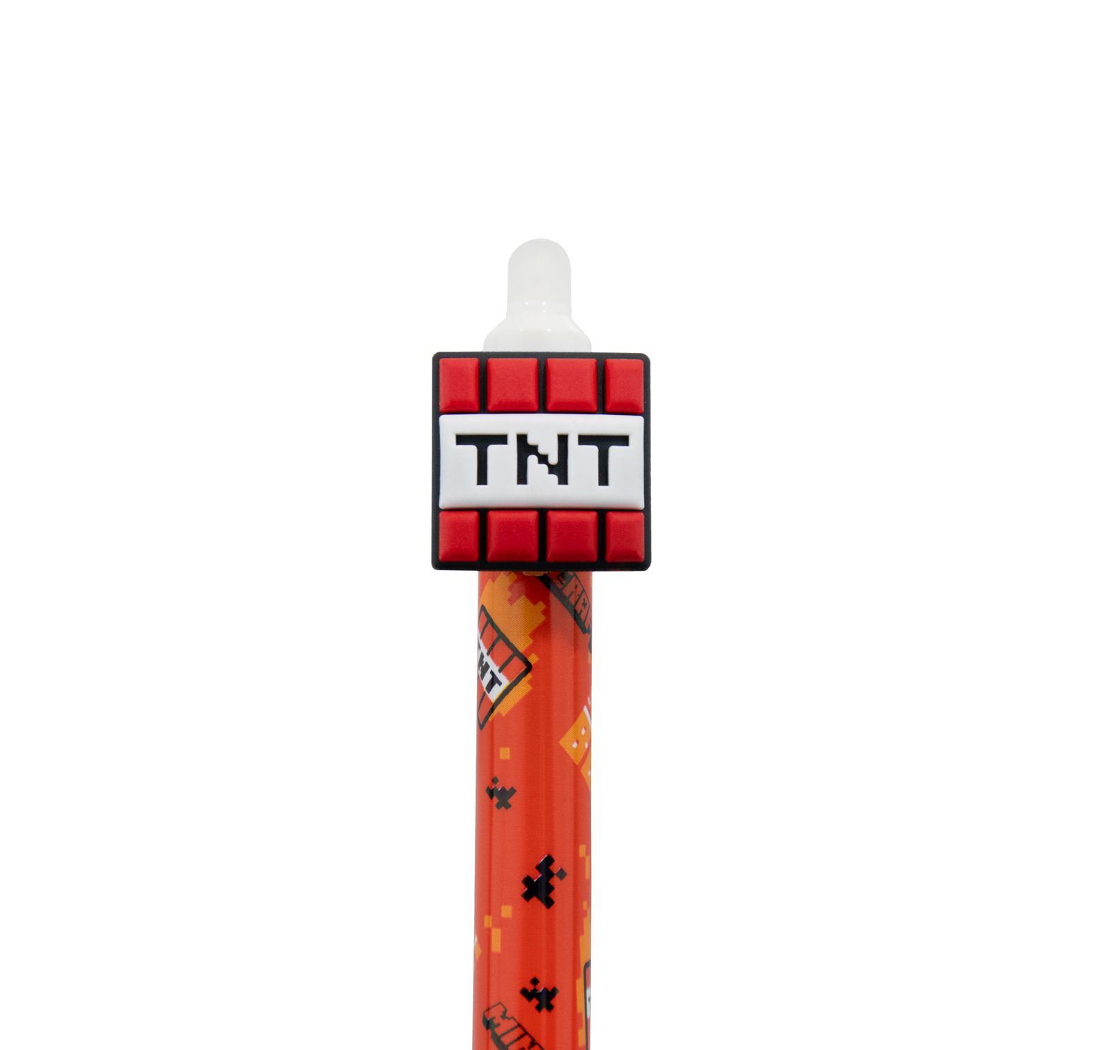 Minecraft TNT - długopis zmazywalny Długopis Minecraft TNT to model w czerwonej obudowie z pikselowym wzorem TNT, wyposażony w końcówkę do ścierania. Lekki i wygodny w użytkowaniu. Szczegóły techniczne Długość: 15,5 cm Średnica: 3,5 cm Funkcja: długopis ścieralny Motyw: Minecraft - TNT Licencjonowany produkt Oficjalny produkt licencjonowany Mojang.