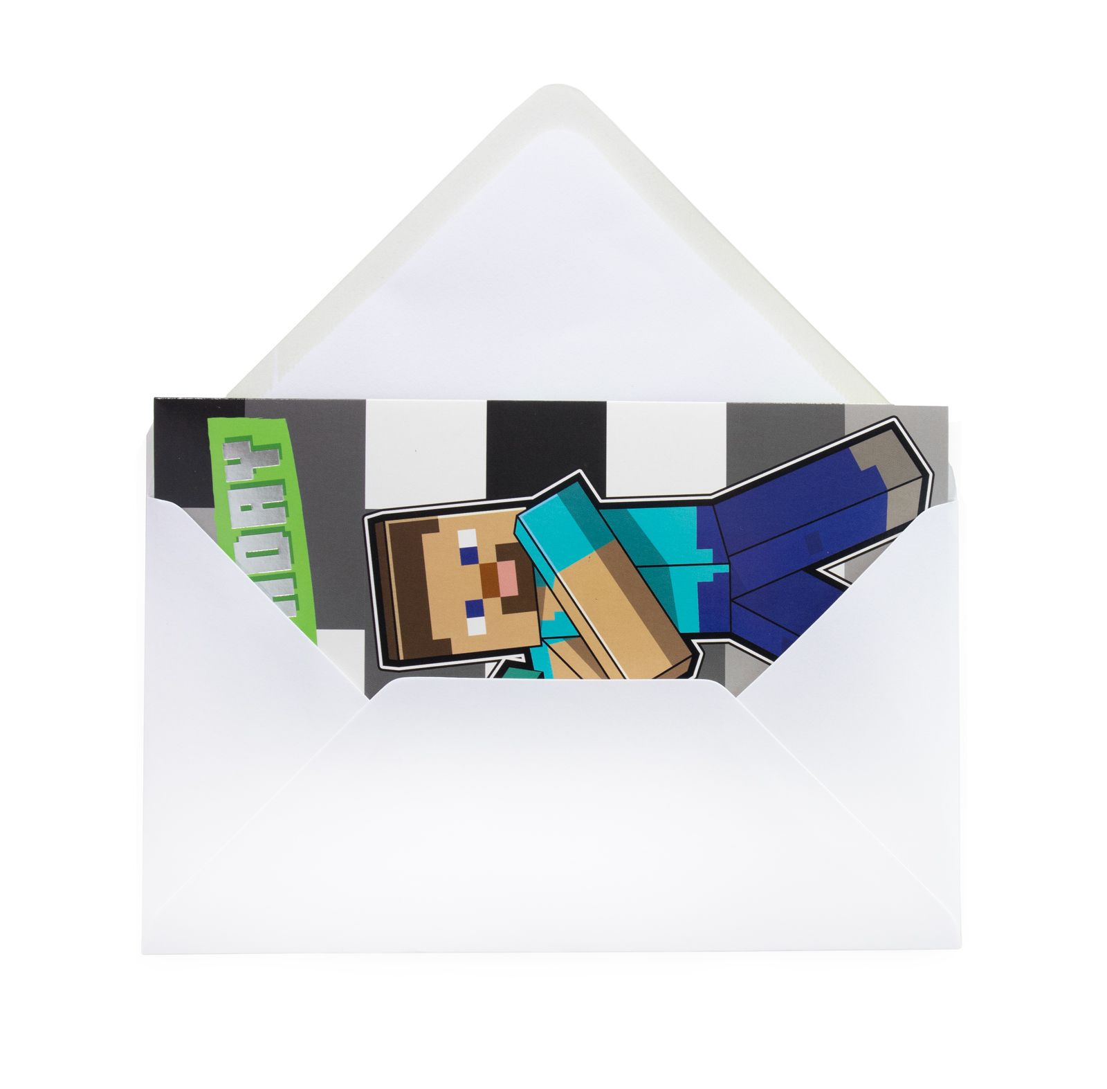 Minecraft - kartka urodzinowa Kartka Minecraft w formacie 13 x 23 cm to klasyczny produkt dla fanów gry. Pikselowa grafika inspirowana światem Creeperów i bloków doskonale trafia w gusta dzieci i nastolatków. Wewnątrz nadrukowane życzenia sprawiają, że kartka nadaje się do wręczenia od razu po zakupie. Szczegóły produktu: Format: 13 x 23 cm Motyw: Minecraft Wnętrze: z nadrukowanymi życzeniami Oficjalny produkt z licencją Licencjonowana kartka Minecraft - sprawdzony produkt handlowy w kategorii gamingowej.