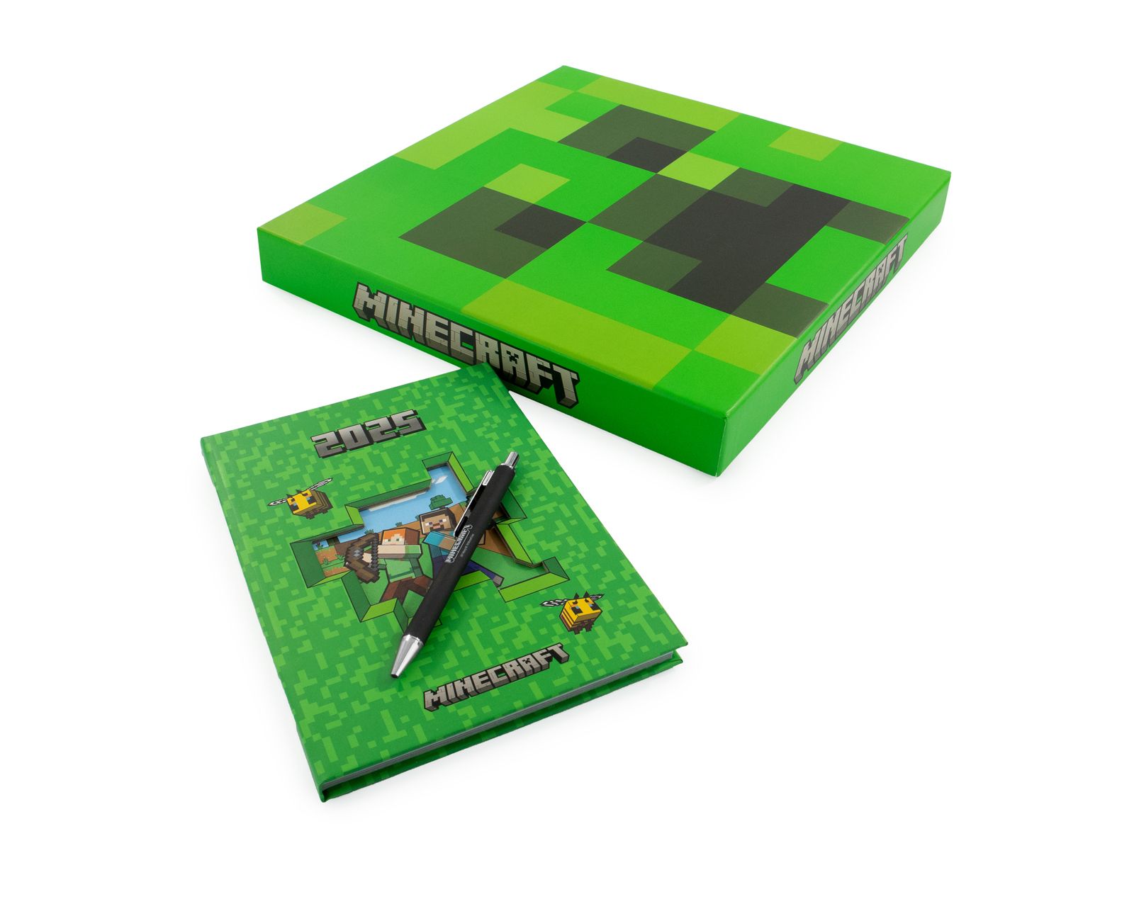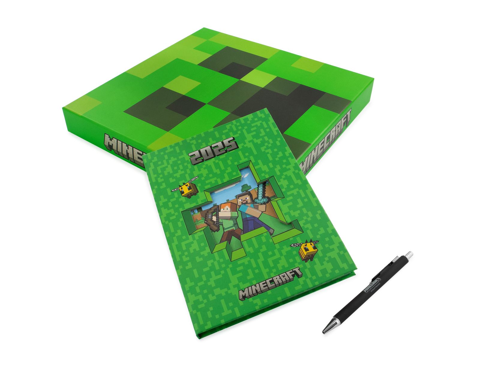 Minecraft Creeper - zestaw na prezent długopis i dziennik 2025 Zestaw na prezent inspirowany światem Minecrafta, w skład którego wchodzi dziennik na 2025 rok oraz długopis. Dziennik w formacie A5 posiada twardą okładkę ozdobioną grafiką z motywami Minecraft oraz przestronne kartki, idealne do planowania i zapisywania notatek przez cały rok. Długopis z motywem Minecraft zapewnia wygodę pisania i doskonale uzupełnia zestaw. Produkt zapakowany w tematyczne pudełko, idealne jako prezent dla miłośników gry. Szczegóły techniczne: Format dziennika: A5 Rodzaj kartek: Kalendarzowe W zestawie: Dziennik i długopis Opakowanie: Tematyczne pudełko Licencjonowany produkt Oryginalny, licencjonowany produkt Minecraft. Perfekcyjny wybór na prezent dla każdego fana gry.