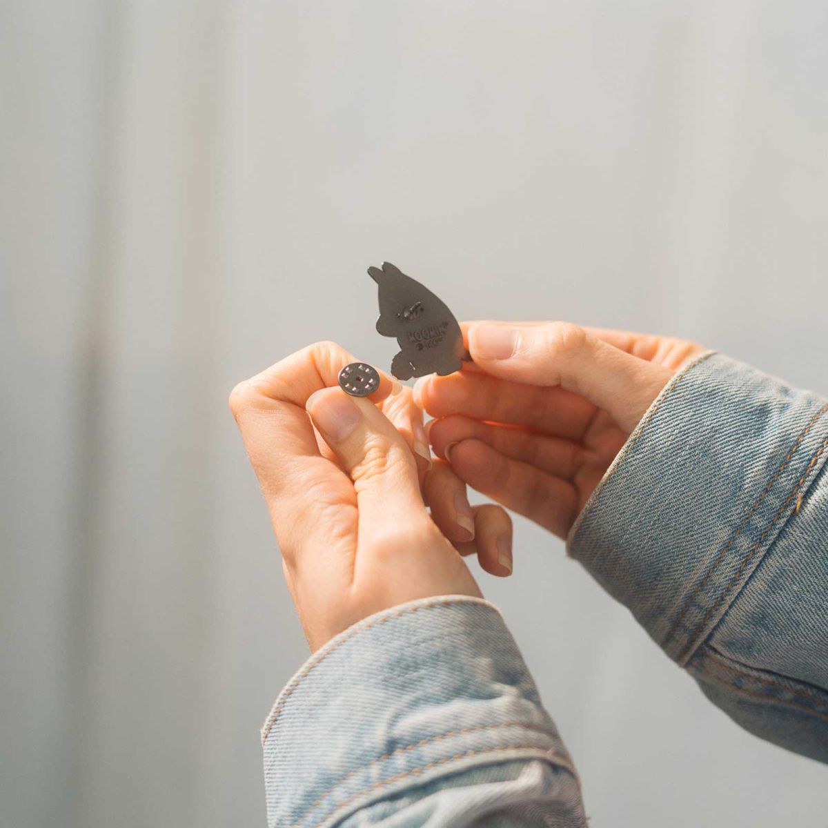 nki - zestaw 4 przypinek Numer katalogowy: SET4P017 Producent: Erik Zestaw Muminki od Erik obejmuje cztery metalowe przypinki z postaciami z Doliny Muminków: Muminkiem, Migotką, Małą Mi i Włóczykijem. Przypinki mają zapięcie motylkowe i pastelowy design. Wymiary opakowania 11,5x2x15 cm. Idealny prezent dla fanów klasycznych ilustracji Tove Jansson. Szczegóły techniczne Wymiary opakowania: 11,5x2x15 cm Zawartość: 4 metalowe przypinki Zapięcie: motylkowe Motyw: Muminki Producent: Erik Oryginalny produkt na oficjalnej licencji Muminki, wyprodukowany przez Erik.