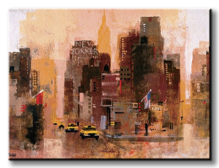 Obraz na ścianę noszący nazwę New Yorker & Cabs. Autorstwa: Ruffell, Colin Szukasz oryginalnej, ekskluzywnej dekoracji na ścianę? Ten obraz jest dla Ciebie! wyraziste barwy i doskonała ostrość nadruku., obrazy charakteryzuje wysokie nasycenie barw i ostrość, nie sposób oderwać od nich wzrok. Kolory utrzymują się przez długie lata. Bawełniane płótno wysokiej jakości gwarantuje świetne odwzorowanie i trwałość obrazu.