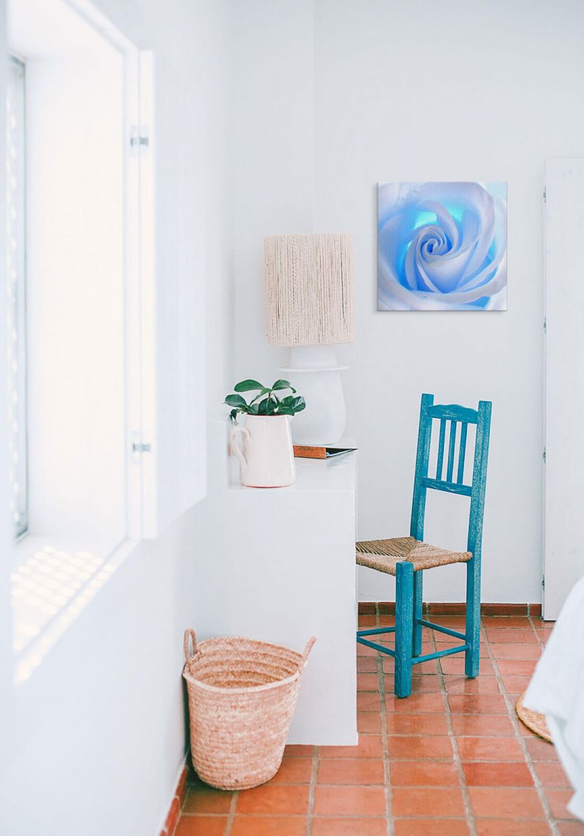 Obraz na płótnie pod tytułem Niebieska róża. Autorstwa: Elen Szukasz oryginalnego, ekskluzywnego motywu na ścianę? Damy Ci to czego potrzebujesz! Głębokie, nasycone barwy, obraz ma intensywne, żywe kolory, jest przy tym bardzo ostry, każdy przechodząc obok zwróci na niego uwagę. Barwy są trwałe, cieszą oko długie lata. Płótno najlepszej jakości, obraz naniesiony na płótno bawełniane 300g/m2, delikatne a zarazem niezwykle trwałe, świetnie rozkłada się na nich farba a struktura płótna jest naturalna. Lubisz markowe obrazy? ten jest oryginalny, to wydanie posiadające licencję. Kolory wiecznie żywe, powierzchnia jest lakierowana dlatego będziesz cieszyć się żywymi kolorami przez dziesięciolecia. Solidna blejtrama, blejtrama na której naciągane jest płótno wykonana jest z naturalnego, sosnowego drewna, jest mocna i gruba. Otrzymasz więc obraz mocny i trwały. Zadrukowane boki, każdy egzemplarz posiada zadrukowane boki, dzięki temu możesz go powiesić na ścianie bez dodatkowej oprawy. Polski producent, kupując polskie produkty wspierasz rodzimy rynek. Bezpieczna przesyłka Dbamy o bezpieczeństwo obrazów podczas transportu. Każda przesyłka jest ubezpieczona a obraz zapakowany jest w solidne, specjalnie zaprojektowane pudełko.