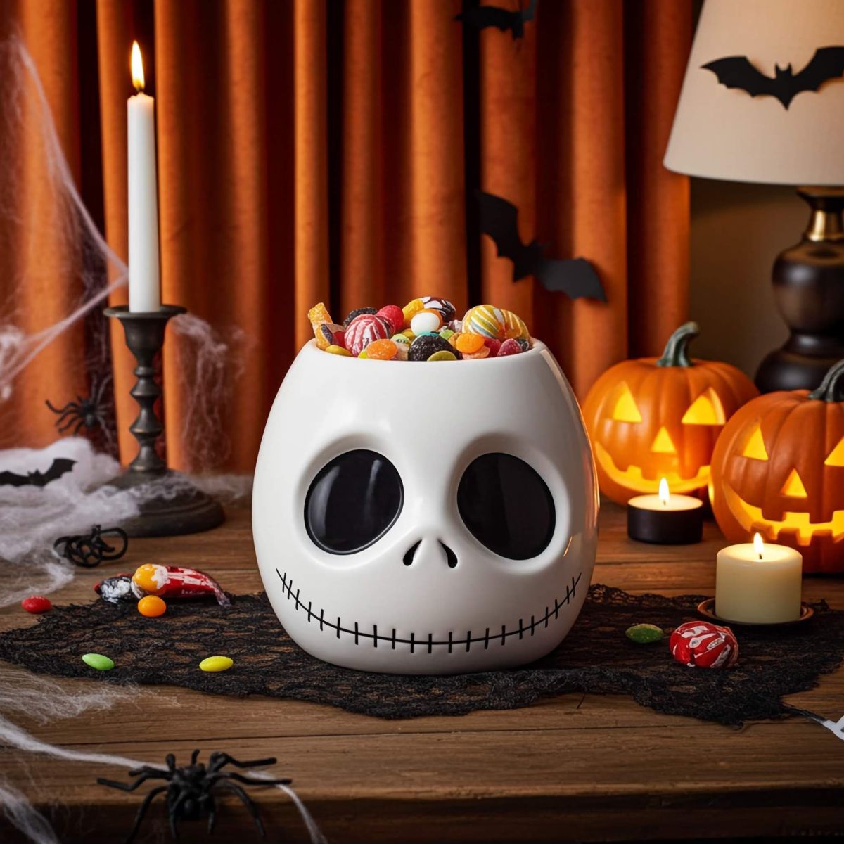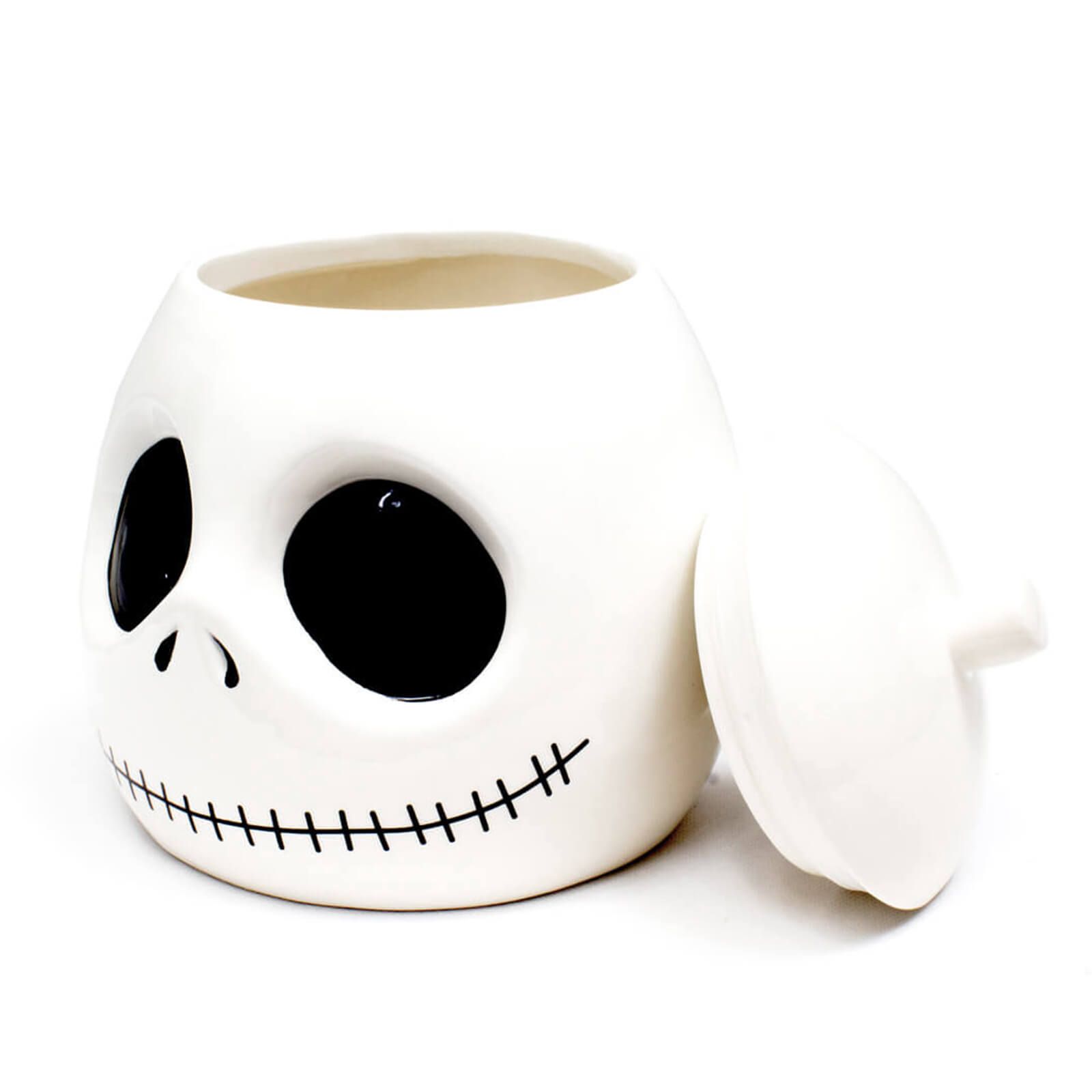Pojemnik na ciasteczka Nightmare Before Christmas Jack Skellington Pojemnik ceramiczny z pokrywką w kształcie głowy bohatera The Nightmare Before Christmas. Produkt idealny do przechowywania kawy, herbaty, przypraw, czy innych produktów. Świetny pomysł na prezent dla bliskiej osoby bądź fana Tima Burtona. Mocny i trwały nadruk na pojemniku. To oryginalny gadżet z licencją producenta. Przedstawiony pojemnik ma wymiary: 23,5x24,5 cm.