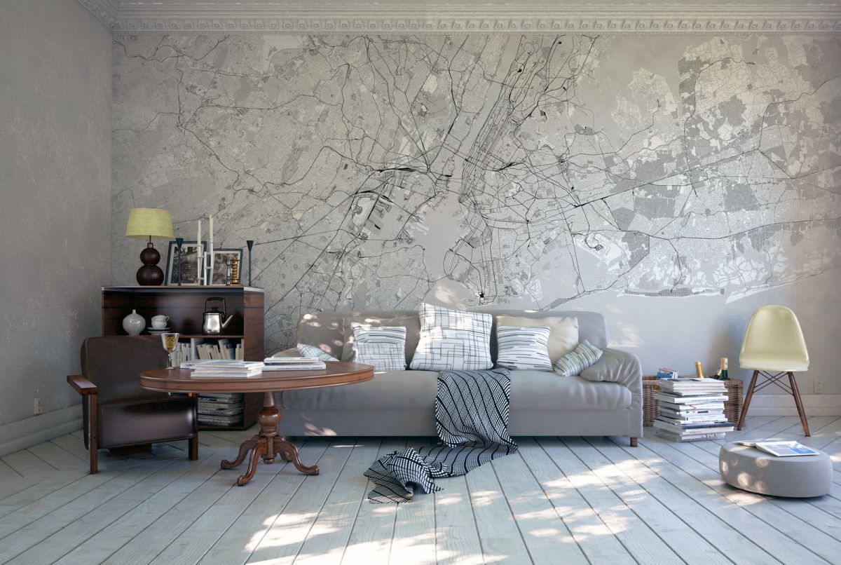 Nowy Jork - mapa czarno biała - fototapeta nice wall o wymiarach 320x230 cm Chciałbyś odmienić wnętrze swojego mieszkania w szybki i prosty sposób? Możesz uzyskać wspaniały efekt bez zbędnych remontów i wielkich wydatków wybierając fototapetę z kolekcji Nice wall