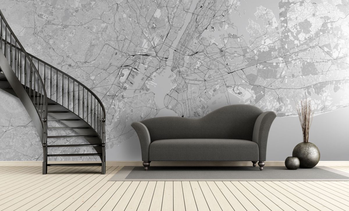 Nowy Jork - mapa w odcieniach szarości - fototapeta nice wall o wymiarach 366x254 cm Chciałbyś odmienić wnętrze swojego mieszkania w szybki i prosty sposób? Możesz uzyskać wspaniały efekt bez zbędnych remontów i wielkich wydatków wybierając fototapetę z kolekcji Nice wall