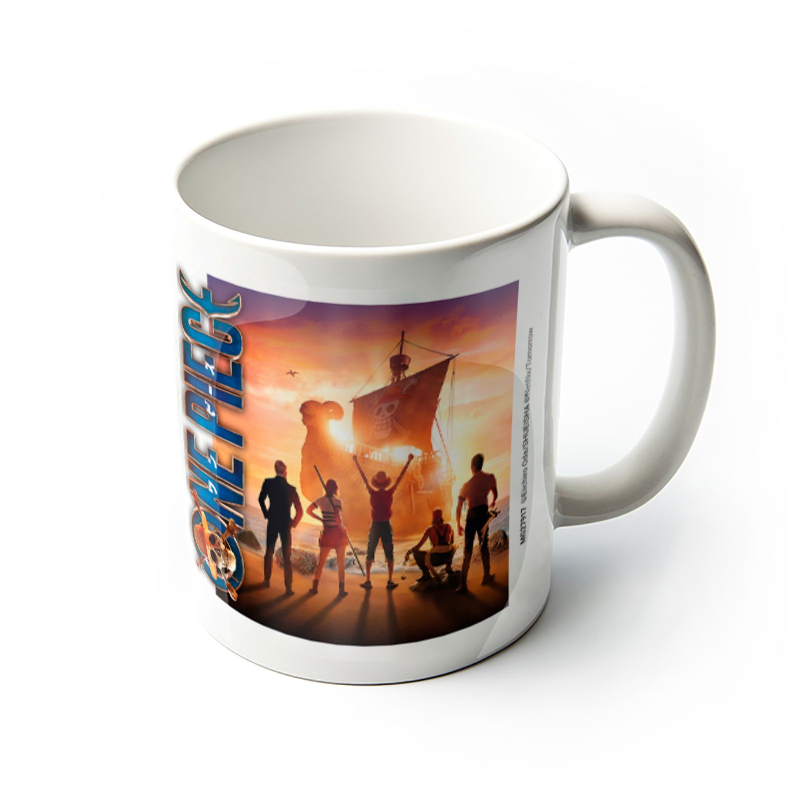 One Piece Live Action Set Sail - kubek Numer katalogowy: MG27917 Producent: Pyramid International Pojemność: 315 ml Kubek ceramiczny z uchem ozdobiony został grafiką inspirowaną serialem One Piece w wersji live action. Nadruk przedstawia załogę stojącą na brzegu i spoglądającą na statek, co nadaje całości filmowy, przygodowy klimat. Model ma klasyczny kształt, dlatego d
