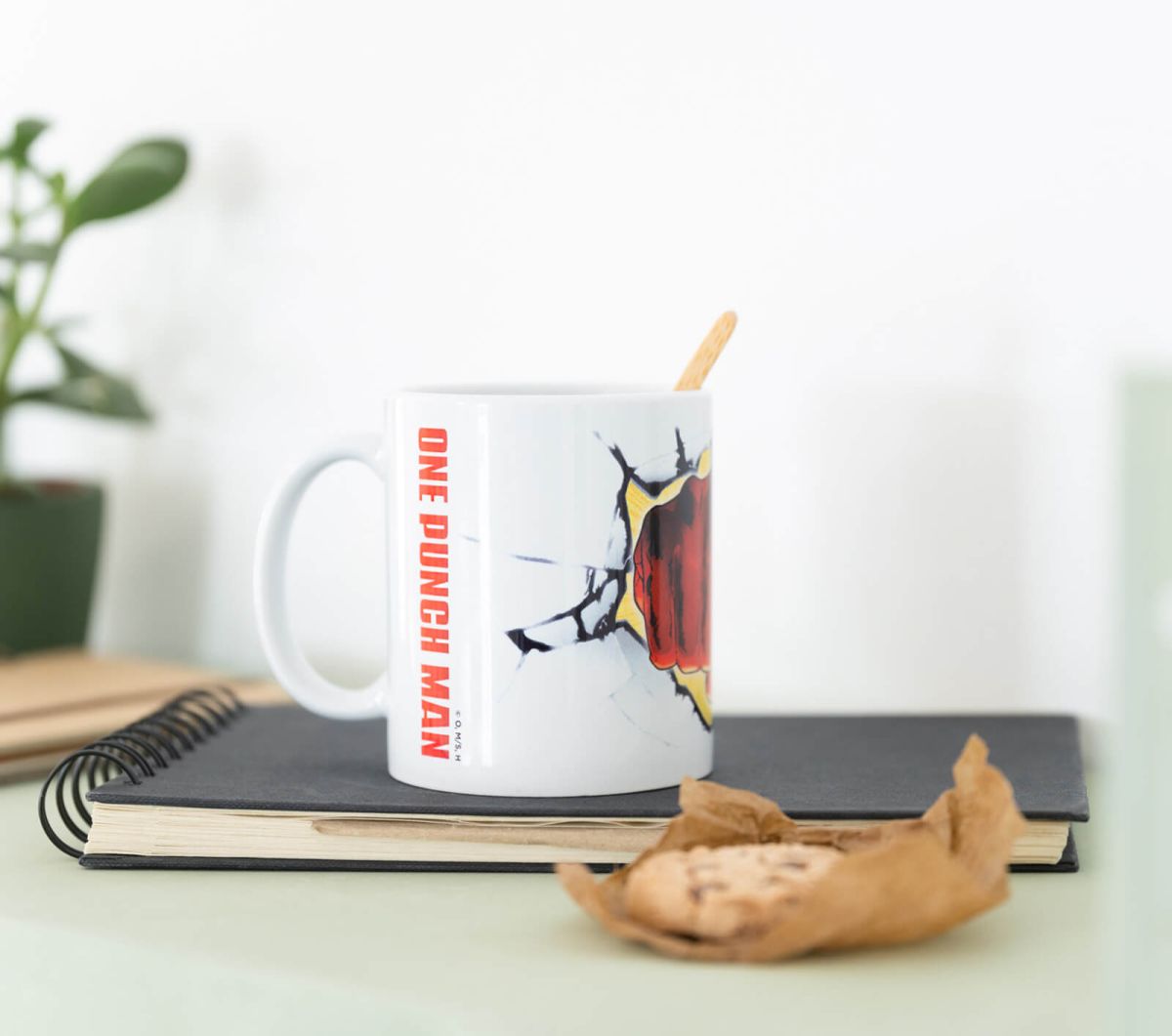 One Punch Man Saitama Fist kubek z uchem Nasz kubek z uchem z ulubionym motywem to idealny pomysł na urozmaicenie kuchennej zastawy, oraz świetny pomysł na prezent dla bliskiej osoby. Nasz produkt jest markowy, posiada oryginalną licencję Jest stworzony z najwyższej jakości porcelany,to gwarancja koloru o wysokim połysku Grafika na kubku jest trwała, w cyfrowej jakości Można myć go w zmywarce i podgrzewać w mikrofalówce Szczegóły techniczne: pojemność 350 ml