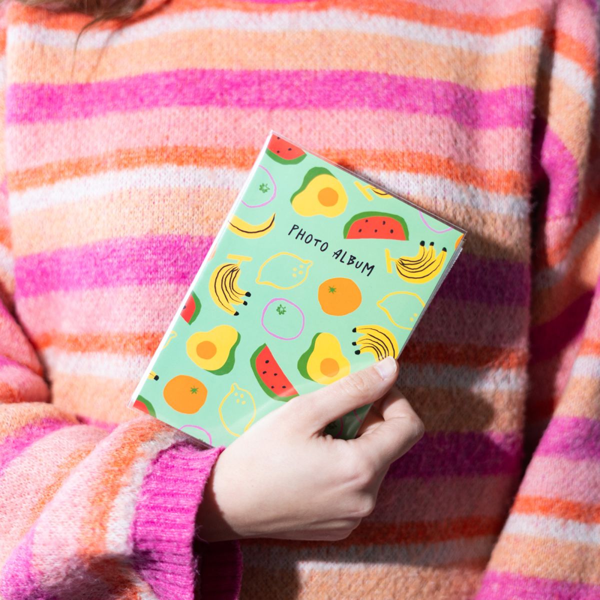 Album na zdjęcia Owoce Album w miękkiej okładcezabezpieczony foliową obwolutą. Jego strony posiadają kieszonkę z folii, która ułatwia umieszczanie fotografii. Album posiada 36stronna których umieścić możesz36 zdjęćw rozmiarze 10x15cm. Szczegóły techniczne: Wymiary zewnętrzne: x cm Wymiary strony:x cm Okładka: miękka, tworzywo sztuczne Karty: miękkie, tworzywo sztuczne, kieszenie Rodzaj albumu: zdjęcia wsuwane Wykończenie albumu: klejony Kolor kart: biały
