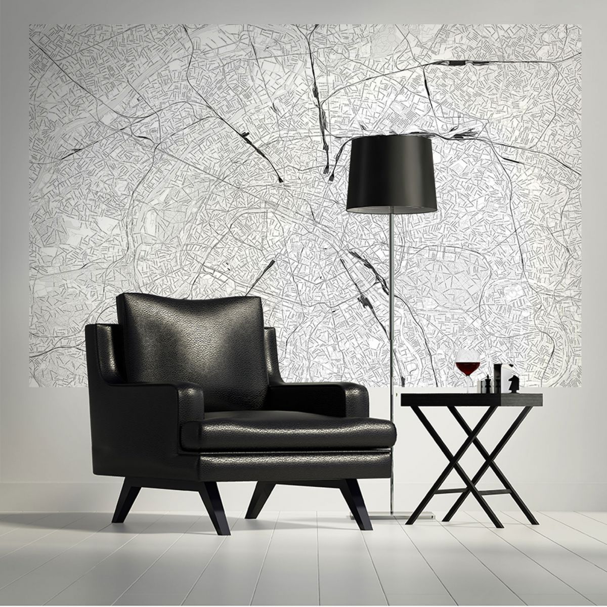 Paryż - czarno-biała mapa miasta - fototapeta jednoczęściowa nice wall o wymiarach 175x115 cm Chciałbyś odmienić wnętrze swojego mieszkania w szybki i prosty sposób? Możesz uzyskać wspaniały efekt bez zbędnych remontów i wielkich wydatków wybierając fototapetę z kolekcji Nice wall