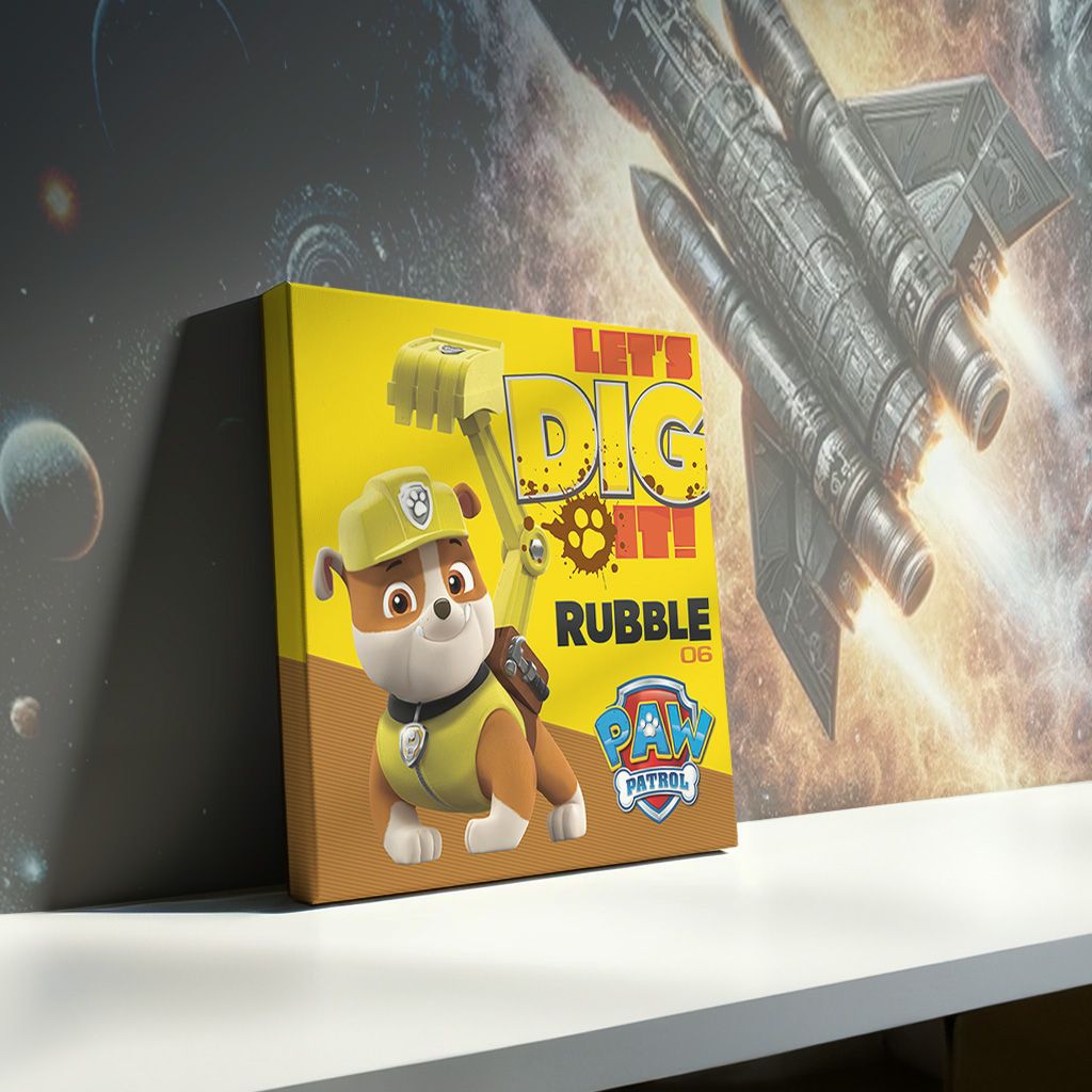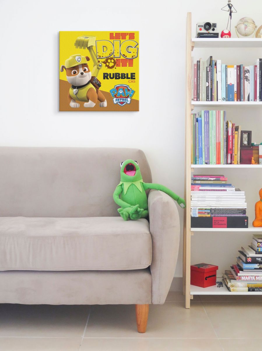 Paw Patrol Rubble obraz na płótnie naciągnięty na sosnowe krosna. Po wyjęciu z opakowania obraz można od razu powiesić na ścianie. Nasze produkty wykonywane są z dużą starannością oraz dbałością o szczegóły. Obraz posiada zadrukowane boki co gwarantuje estetyczne wykończenie bez konieczności dodatkowego oprawiania go.