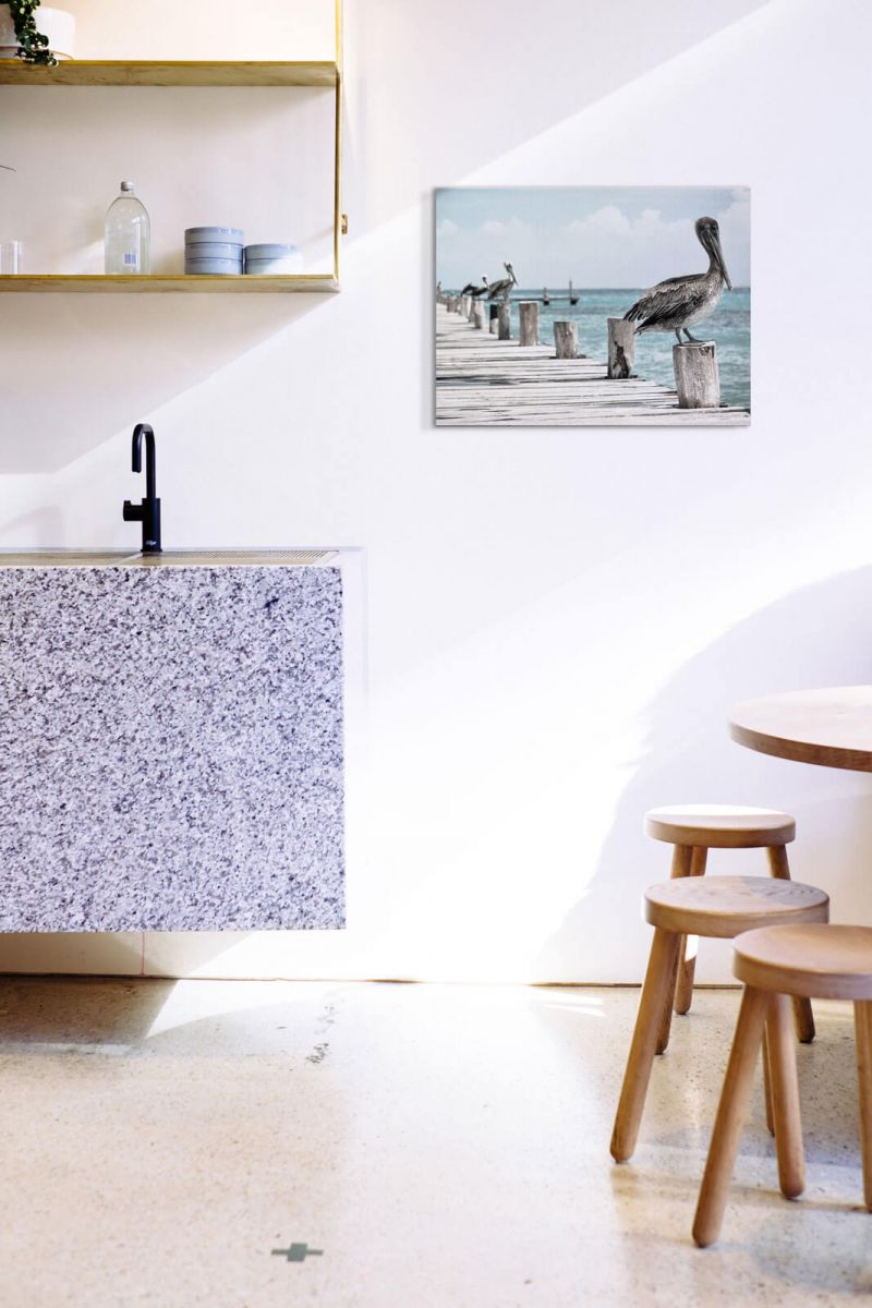 Pelikany na molo - obraz na płótnie