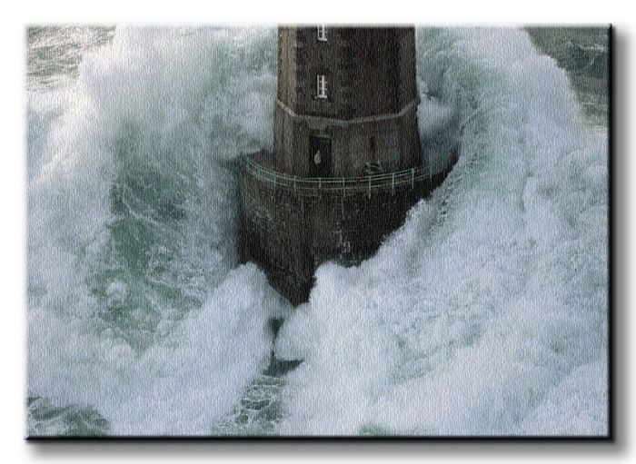 Obraz na ścianę noszący nazwę Phares Dans La Temp?te, La Jument. Autorstwa: Guichard, Jean Szukasz oryginalnej, ekskluzywnej dekoracji na ścianę? Ten obraz jest dla Ciebie! nasycone kolory i doskonała jakość., obrazy charakteryzuje wysokie nasycenie barw i ostrość, nie sposób oderwać od nich wzrok. Kolory utrzymują się przez długie lata. Mocne bawełniane płótno wygląda naturalnie i oddaje charakter autentyczności obrazu.