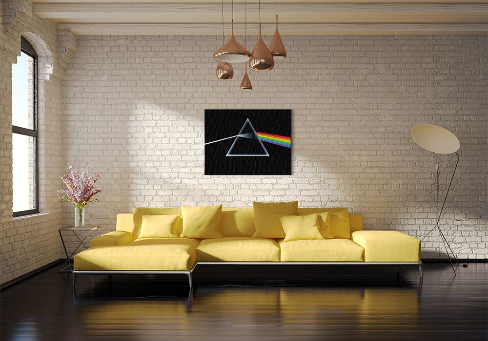 Obraz na ścianę noszący nazwę Pink FLoyd (Dark Side Of The Moon). Autorstwa: nieznany Szukasz oryginalnego obrazu na ścianę? Wybierz jeden z naszej kolekcji! fantastyczne kolory i rewelacyjna ostrość., obrazy charakteryzuje wysokie nasycenie barw i ostrość, nie sposób oderwać od nich wzrok. Wysokie nasycenie barw i doskonała ostrość nadruku to cechy naszych obrazów. Dzięki najnowszym technologiom kolory obrazu pozostają niezmienione przez bardzo długi czas. Mocne bawełniane płótno wygląda naturalnie i oddaje charakter autentyczności obrazu.