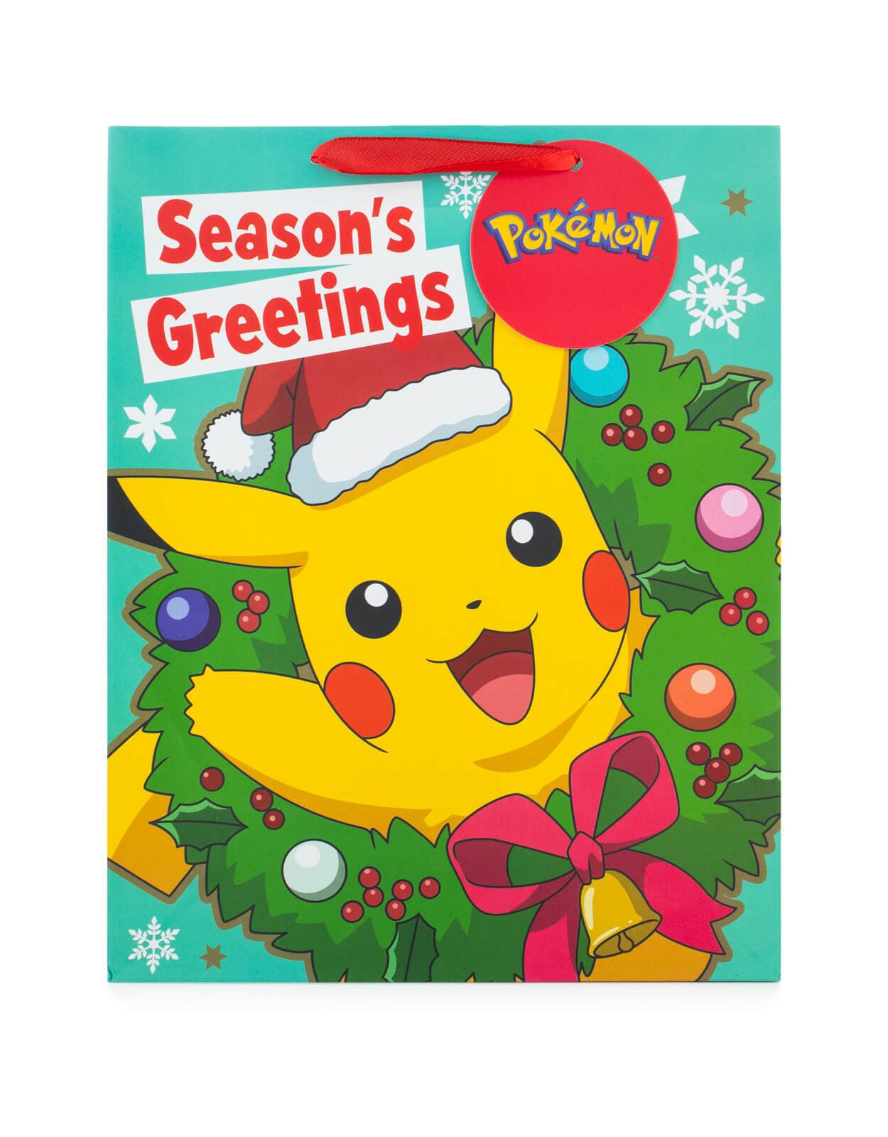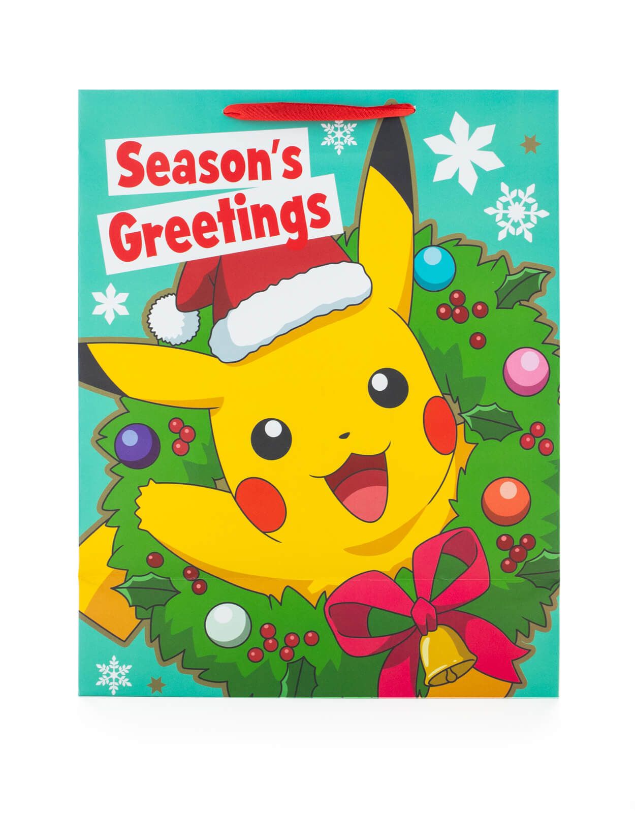 Pokemon Xmas - torebka na prezent Torebka Pokemon Xmas w dużym formacie z kolorowym, świątecznym motywem. Wykonana z grubszego papieru, z trwałymi uchwytami sznurkowymi, idealna do pakowania prezentów w bożonarodzeniowym stylu. Szczegóły techniczne Wymiary: 26 x 33 cm Motyw: Pokemon Xmas Uchwyty: sznurkowe Przeznaczenie: torebka prezentowa Licencjonowany produkt Licencjonowany produkt Pokemon.