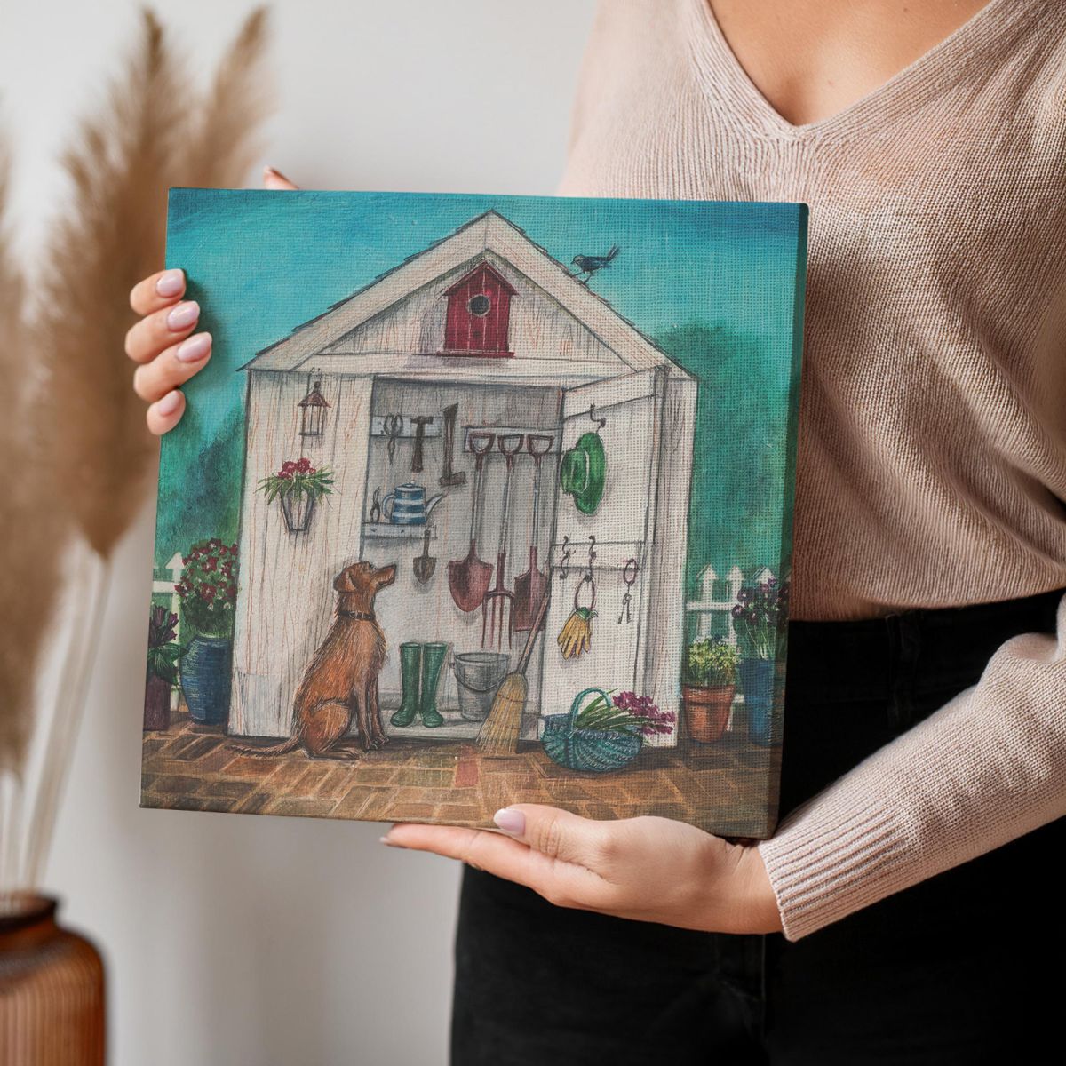 "Potting Shed" to piękny obraz, który przedstawia psa w ogrodzie pełnym narzędzi. Delikatne odcienie zieleni i brązu tworzą relaksującą atmosferę, idealną do wnętrz, które potrzebują naturalnego akcentu. Wykonany techniką akrylu na płótnie, obraz charakteryzuje się trwałością i głębią kolorów. Idealny jako dekoracja do nowoczesnych wnętrz, wprowadzając element natury i spokoju. Produkt jest oryginalny i posiada licencję producenta, co potwierdza jego wysoką jakość i unikalność. Obraz na płótnie typu canvas. Sosnowe krosna. Produkt od razu gotowy do powieszenia na ścianę. Dbamy o każdy szczegół dlatego możesz być pewien, że kupujesz produkt najwyższej jakości.Obraz jest ostry a barwy nasycone. Nie ma konieczności oprawiania obrazu ponieważ jego boki również są zadrukowane. Mocne, trwałe płótno o ciekawej fakturze. Krosna wykonane z sosnowego drewna.