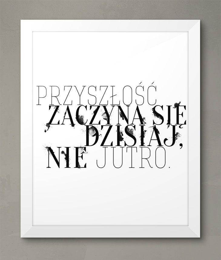 Plakat na ścianę zatytułowany Przyszłość zaczyna się dzisiaj Szukasz oryginalnych, wykonanych z najwyższą starannością dekoracji? Drukujemy dla Ciebie na materiałach najlepszej jakości a nasi graficy ciągle przygotowują ciekawe, nowoczesne wzory plakatów. Plakat drukowany na grubym i mocnym papierze satynowym o gramaturze 220 g/m2 przez polskiego producenta. Dzięki temu umieszczony w ramie nie marszczy się i świetnie prezentuje przez długi czas. Powierzchnia plakatu jest matowa, zadrukowana w technologii druku cyfrowego co pozwoliło uzyskać głębokie nasycenie kolorów i niesamowitą ostrość obrazu. Wybierając ten produkt masz pewność, że otrzymasz fantastyczną jakość. Wszystkie plakaty z naszej oferty posiadają licencję, otrzymasz więc oryginalny produkt.