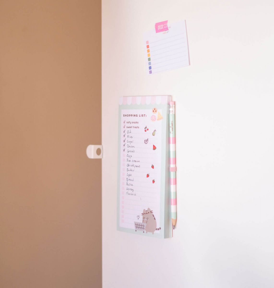 Magnetyczna lista zakupów Pusheen Foodie Arkusz kolorowych karteczek z miejscem na listę zakupową z Twoim ulubionym motywem. Na odwrocie posiada dwa duże magnesy, które umożliwią Ci umieszczenie planeru np. na lodówce. Szczegóły techniczne: Wymiary arkusza: 10x21 cm