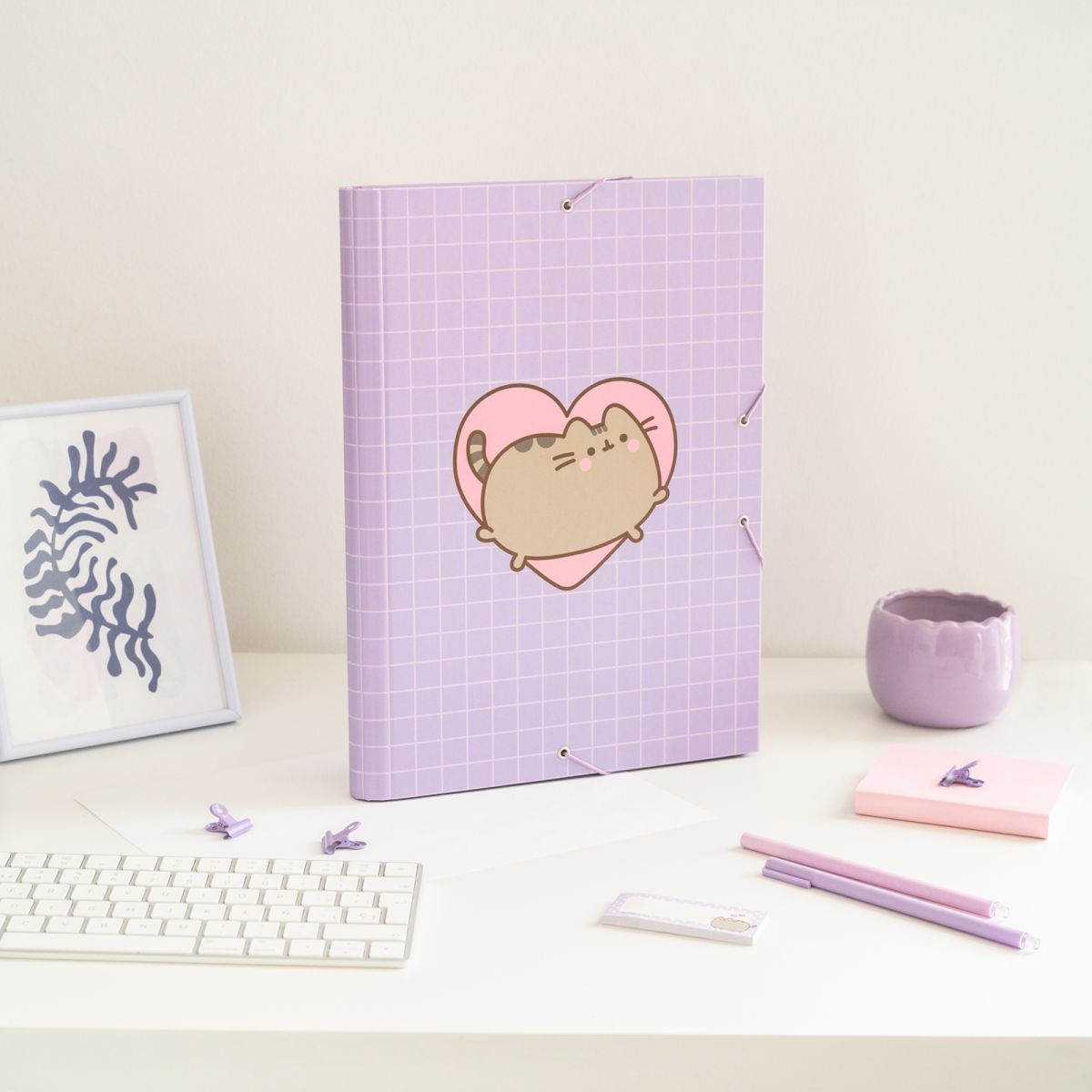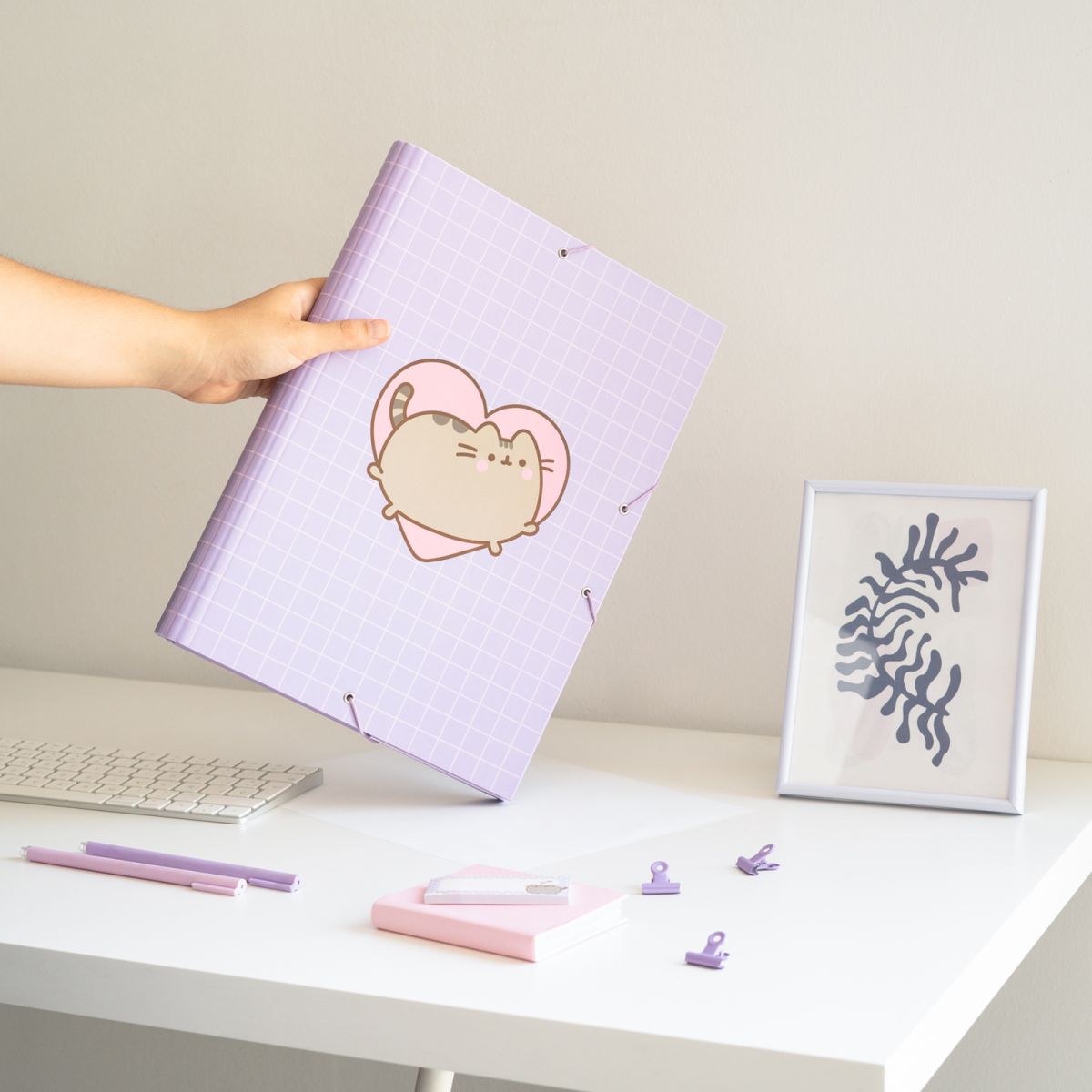 Teczka Pusheen Moments Teczka na dokumenty w formacie A4. Wykonana z twardej tektury o grubości 2 mm. Wyłożonamatowym laminowanym papierem. Zamykana jest nagumkę, która dodatkowo usztywnia całość. Oryginalny produktposiadający licencję producenta. Szczegóły techniczne Wymiary teczki:24x34x3cm
