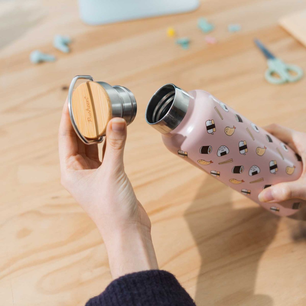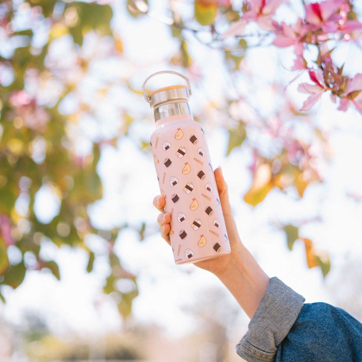 Pusheen Sushi Roll - butelka termiczna Numer katalogowy: BMA09 Producent: Grupo Erik Pojemność: 500 ml Butelka termiczna Pusheen Sushi Roll została wykonana ze stali nierdzewnej i przeznaczona do codziennego użytkowania w domu, pracy, szkole i w podróży. Model ma podwójną warstwę stali nierdzewnej, która pomaga utrzymać temperaturę napoju - do 12 godzin dla napojów ciepłych i do 24 godzin dla zimnych. Szczelny korek z wykończeniem imitującym drewno oraz metalowy uchwyt ułatwiają wygodne przenoszenie i korzystanie z butelki poza domem. Skład wolny od BPA zwiększa komfort użytkowania, a pojemność 500 ml dobrze sprawdza się przy codziennym nawodnieniu. To funkcjonalny model z rozpoznawalnym motywem Pusheen, który łączy praktyczność z atrakcyjnym wyglądem. Rodzaj: butelka termiczna ze stali nierdzewnej Motyw: Pusheen Sushi Roll Wymiary: 23 x 7 cm Cechy: szczelne zamknięcie, metalowy uchwyt, BPA free Oryginalny produkt na oficjalnej licencji Pusheen.
