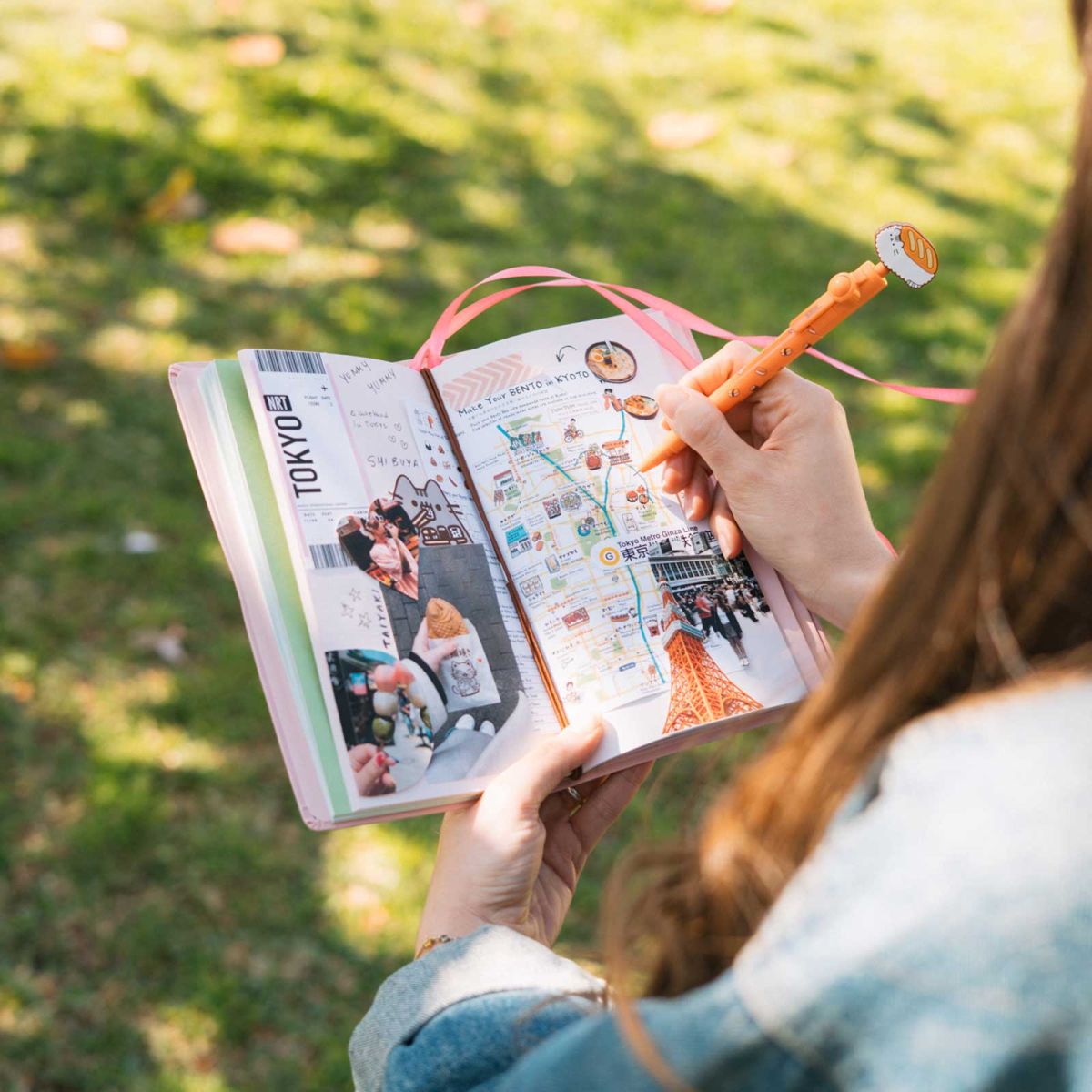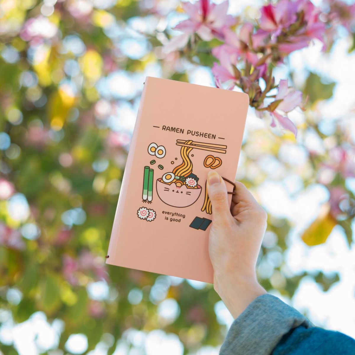 Motyw z serii Pusheen Sushi Roll nadaje całości rozpoznawalny, dekoracyjny charakter i wyróżnia notes na tle bardziej klasycznych modeli papierniczych.