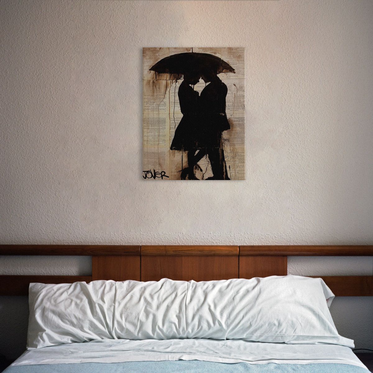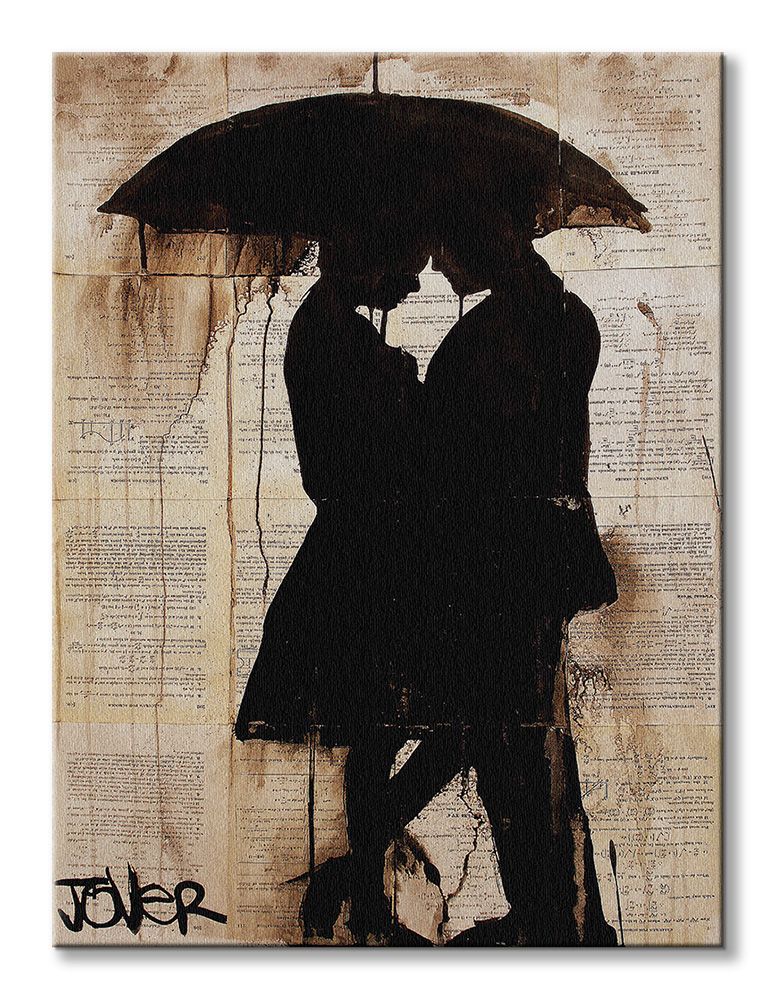 Obraz na ścianę noszący nazwę Rain Lovers. Autorstwa: Loui Jover Szukasz oryginalnej, ekskluzywnej dekoracji na ścianę? Ten obraz jest dla Ciebie! fantastyczne kolory i rewelacyjna ostrość., obrazy charakteryzuje wysokie nasycenie barw i ostrość, nie sposób oderwać od nich wzrok. Kolory utrzymują się przez długie lata. Mocne bawełniane płótno wygląda naturalnie i oddaje charakter autentyczności obrazu.