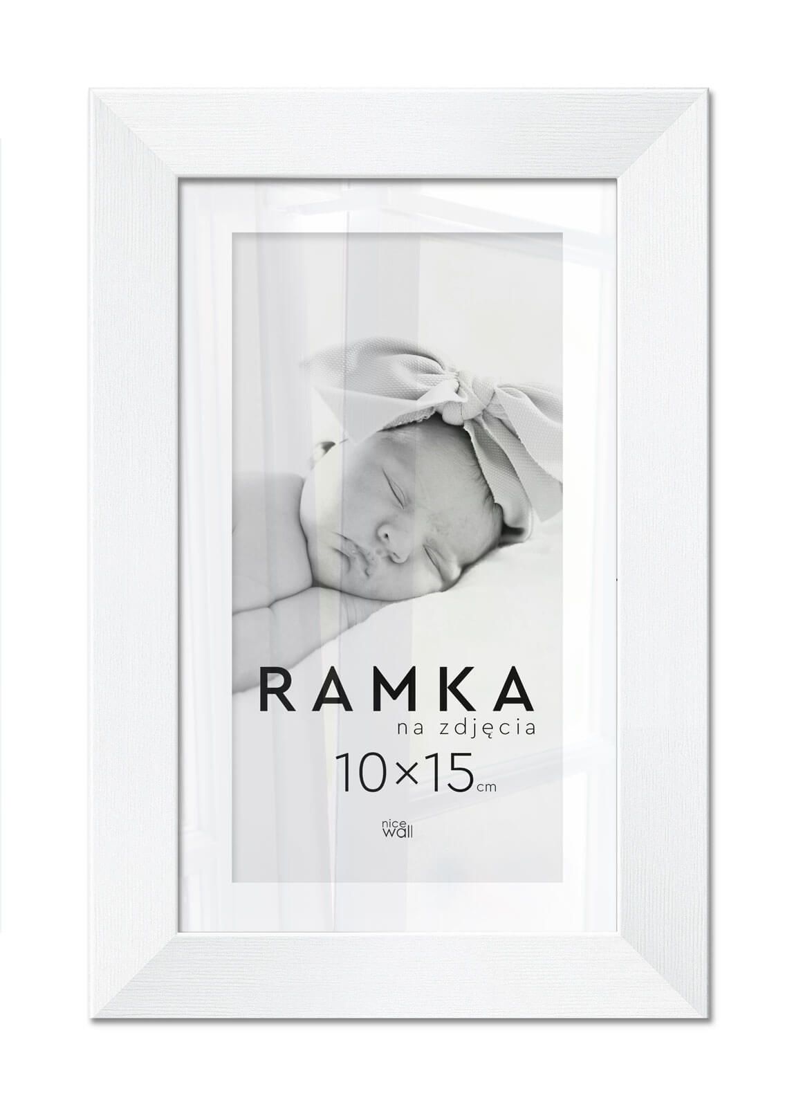 Ramka na zdjęcia 10x15 cm z podpórką Biała Eleganckie ramki do oprawy plakatów, zdjęć i rysunków. Wykonane zpłyty pilśniowej, polistyrenu i lekkiej, przejrzystej pleksy 1 mm. Ramę można powiesić w pionie lub poziomie. Posiadają na plecach przymocowaną podpórkę, dzięki której można położyć oprawione zdjęcie na stojąco. Każdy egzemplarz jest zafoliowany. Posiadającertyfikat FSC. Wyprodukowanew Polsce. Wymiary ramy: 10x15 cm. Wymiary profilu: front 1,5 cm, bok 1,3 cm,