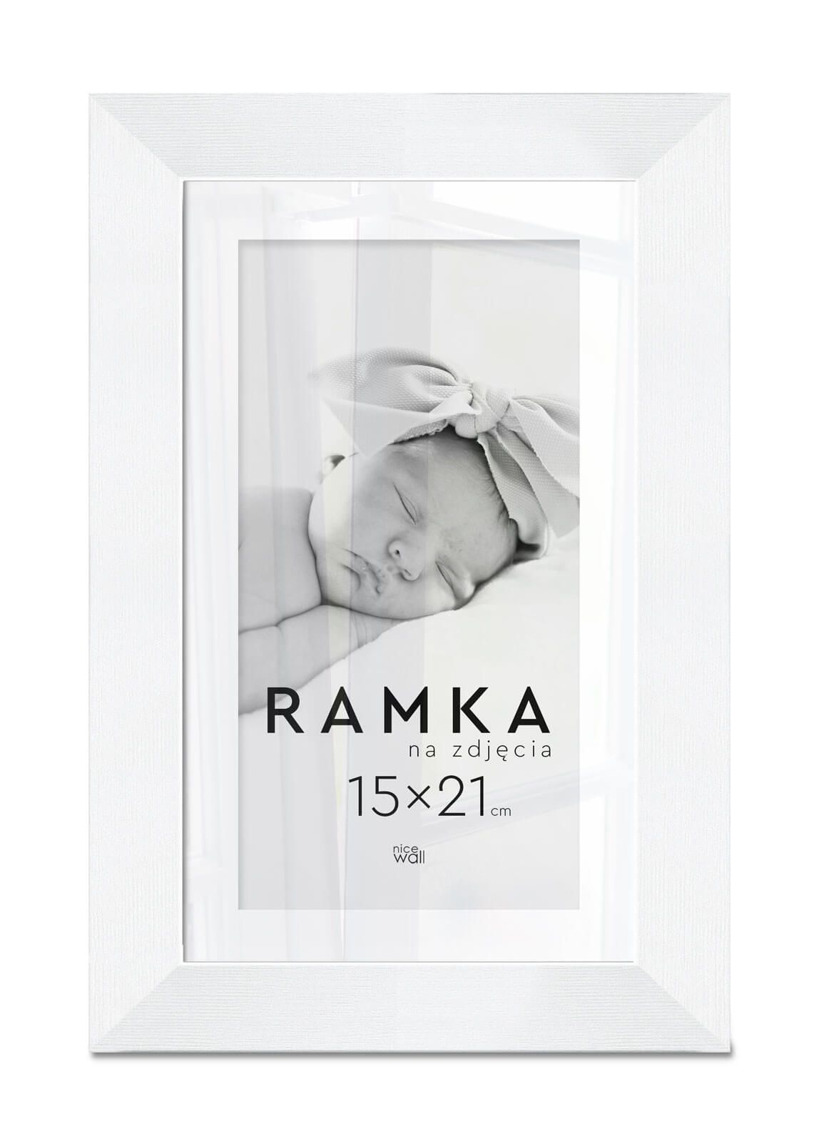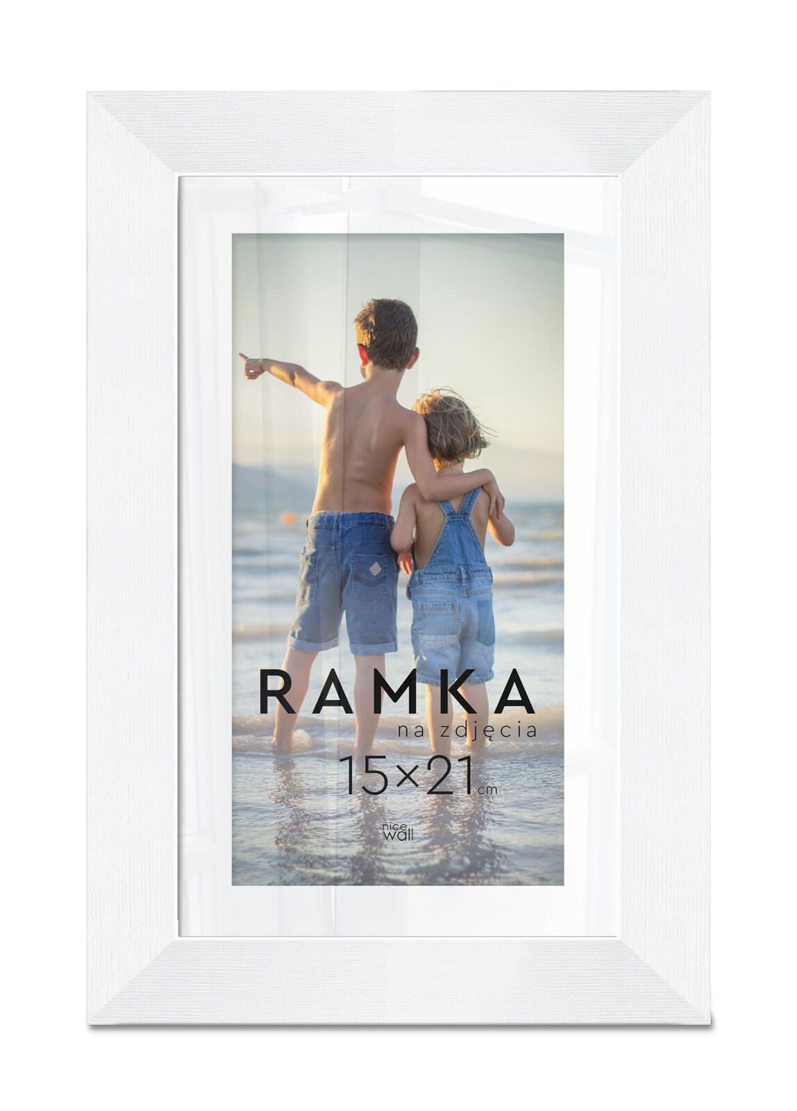 Ramka na zdjęcia 15x21 cm Biała Eleganckie ramki do oprawy plakatów, zdjęć i rysunków. Wykonane zpłyty pilśniowej, polistyrenu i lekkiej, przejrzystej pleksy 1 mm. Ramę można powiesić w pionie lub poziomie. Każdy egzemplarz jest zafoliowany. Posiadającertyfikat FSC. Wyprodukowanew Polsce. Wymiary ramy: 15x21 cm. Wymiary profilu: front 1,5 cm, bok 1,3 cm,