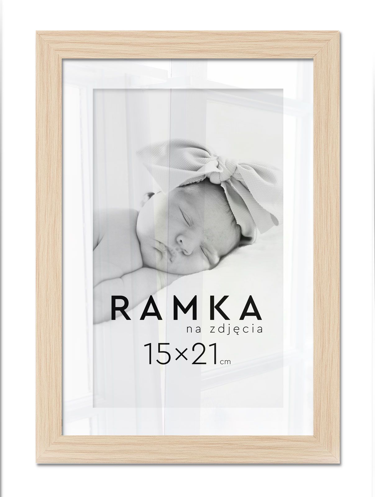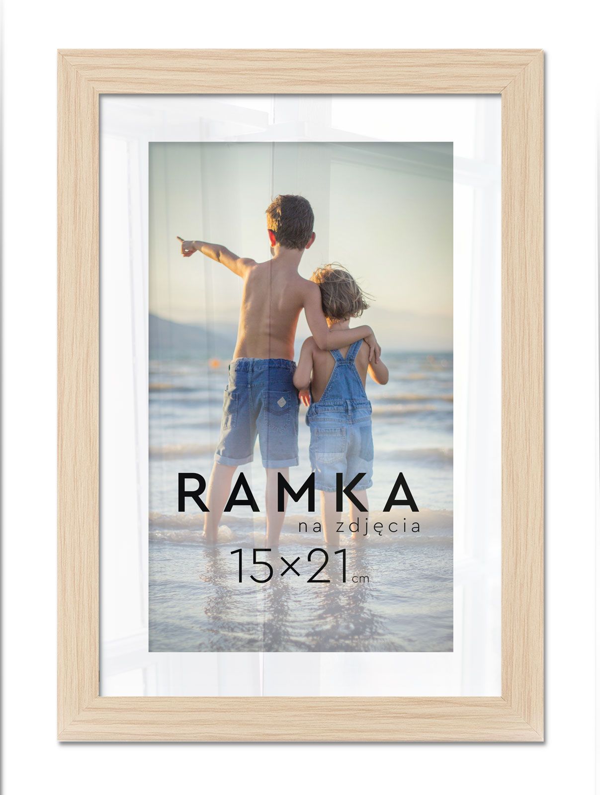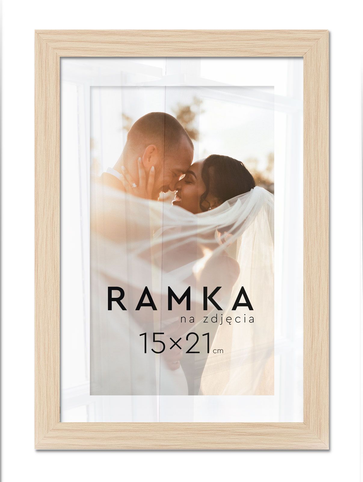 Ramka na zdjęcia 15x21 cm Buk Eleganckie ramki do oprawy plakatów, zdjęć i rysunków. Wykonane zpłyty pilśniowej, polistyrenu i lekkiej, przejrzystej pleksy 1 mm. Ramę można powiesić w pionie lub poziomie. Każdy egzemplarz jest zafoliowany. Posiadającertyfikat FSC. Wyprodukowanew Polsce. Wymiary ramy: 15x21 cm. Wymiary profilu: front 1,5 cm, bok 1,3 cm,