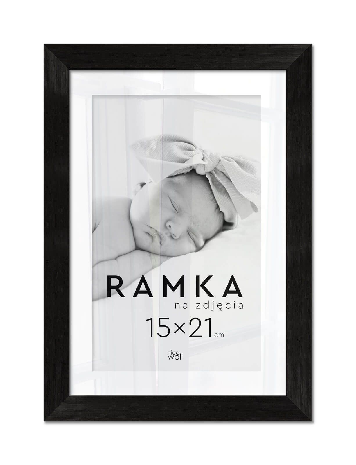 Ramka na zdjęcia 15x21 cm Czarna Eleganckie ramki do oprawy plakatów, zdjęć i rysunków. Wykonane zpłyty pilśniowej, polistyrenu i lekkiej, przejrzystej pleksy 1 mm. Ramę można powiesić w pionie lub poziomie. Każdy egzemplarz jest zafoliowany. Posiadającertyfikat FSC. Wyprodukowanew Polsce. Wymiary ramy: 15x21 cm. Wymiary profilu: front 1,5 cm, bok 1,3 cm,